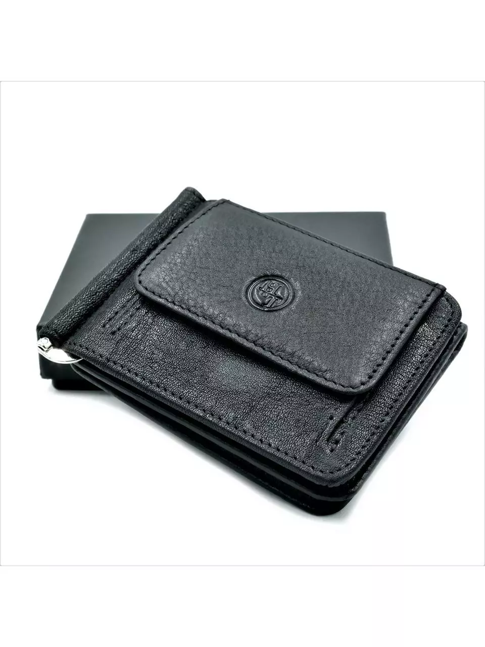 Чоловічий шкіряний гаманець-зажим Weatro 11 х 8 х 2 см Чорний wtro-168-27