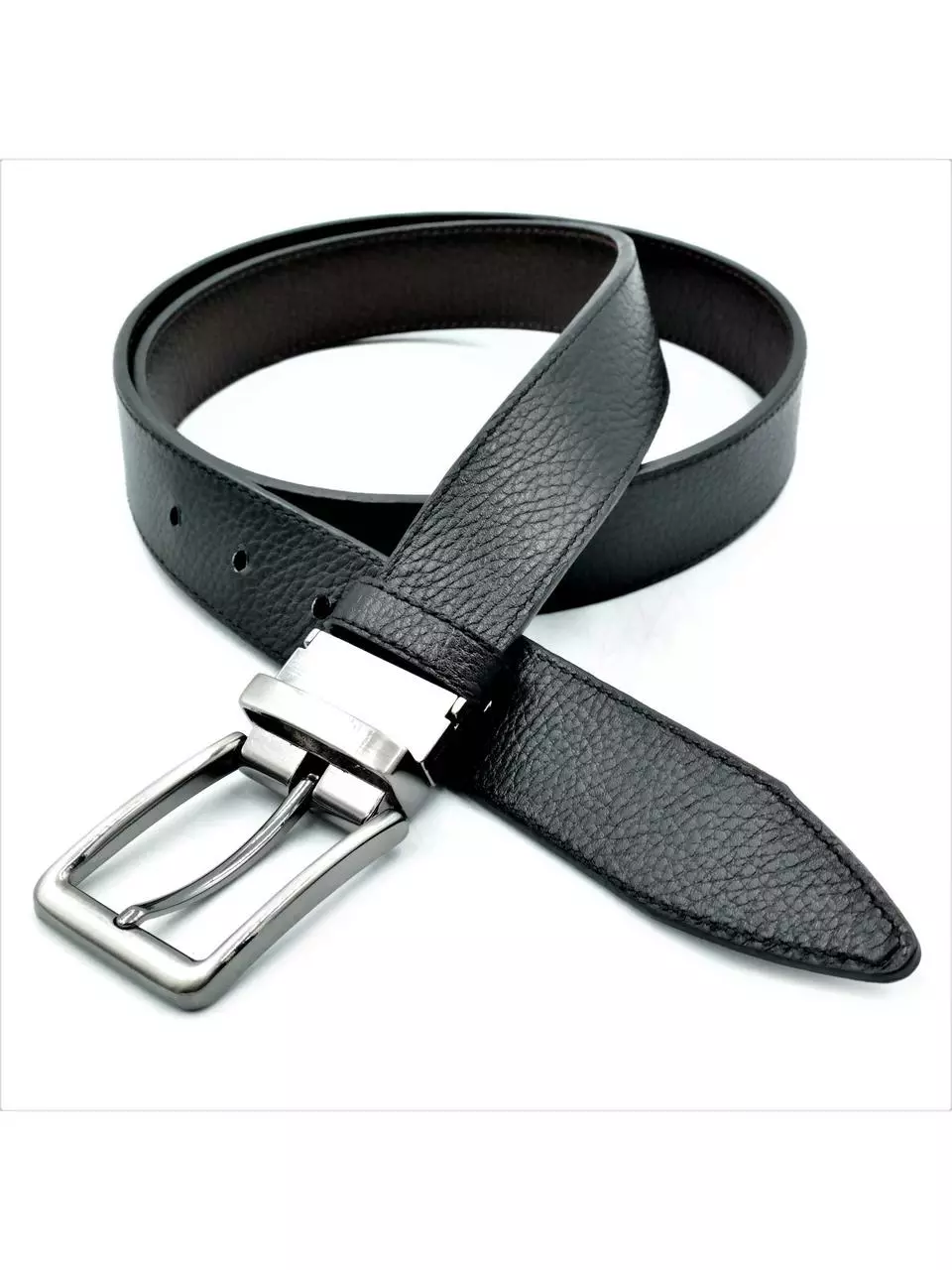 Чоловічий шкіряний ремінь двосторонній виготовлений із цільного