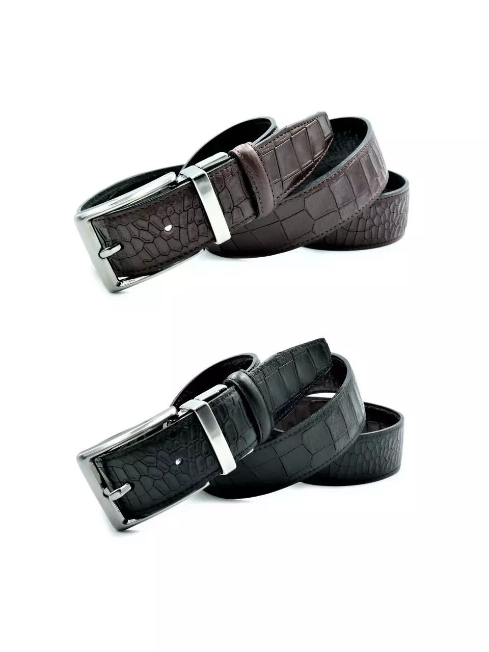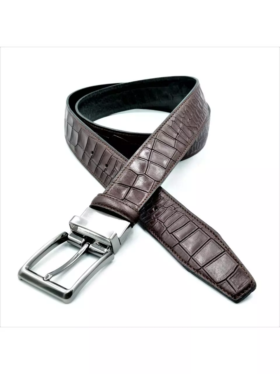 Чоловічий шкіряний ремінь двосторонній виготовлений із цільного