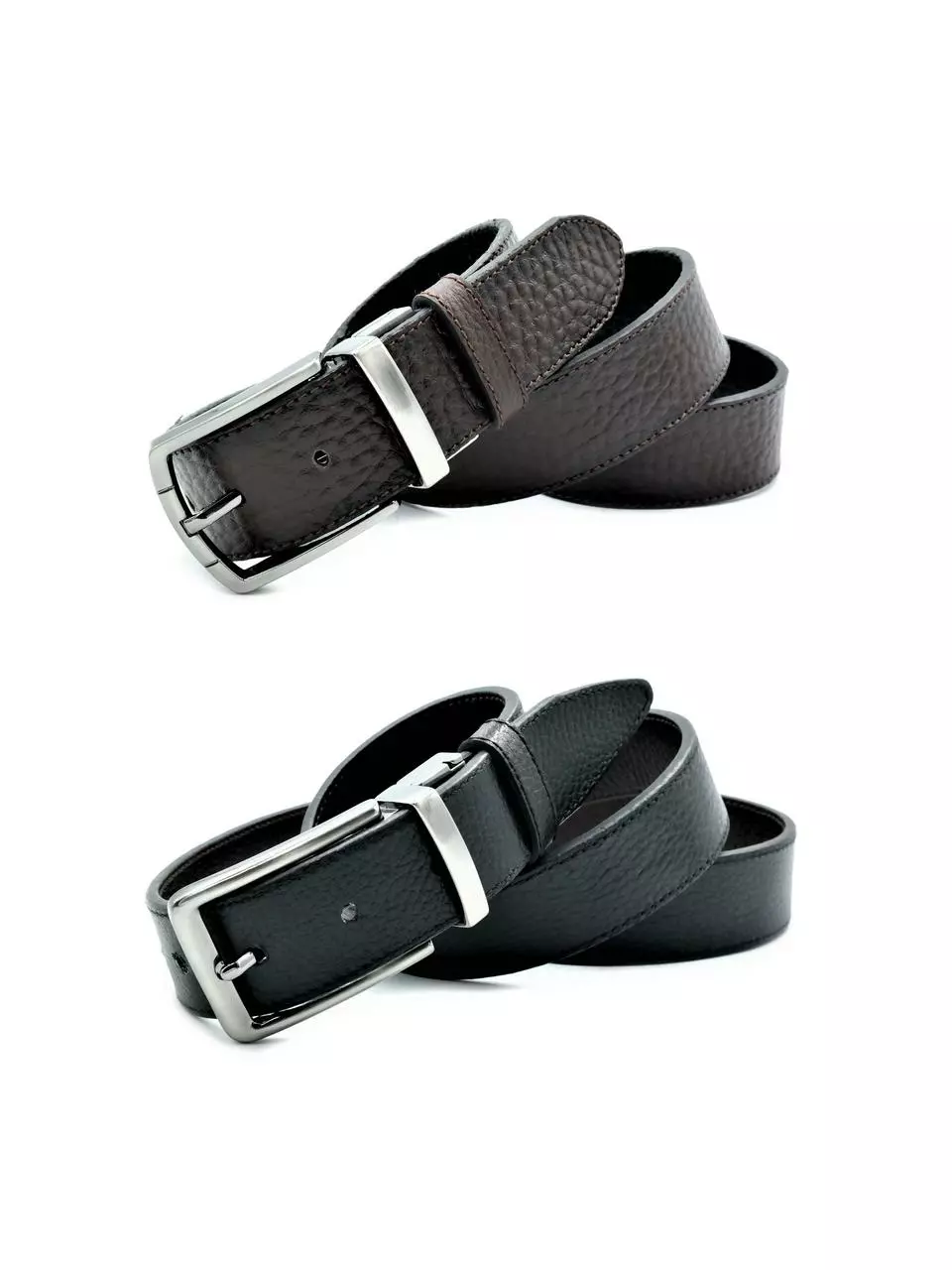 Чоловічий шкіряний ремінь двосторонній виготовлений із цільного