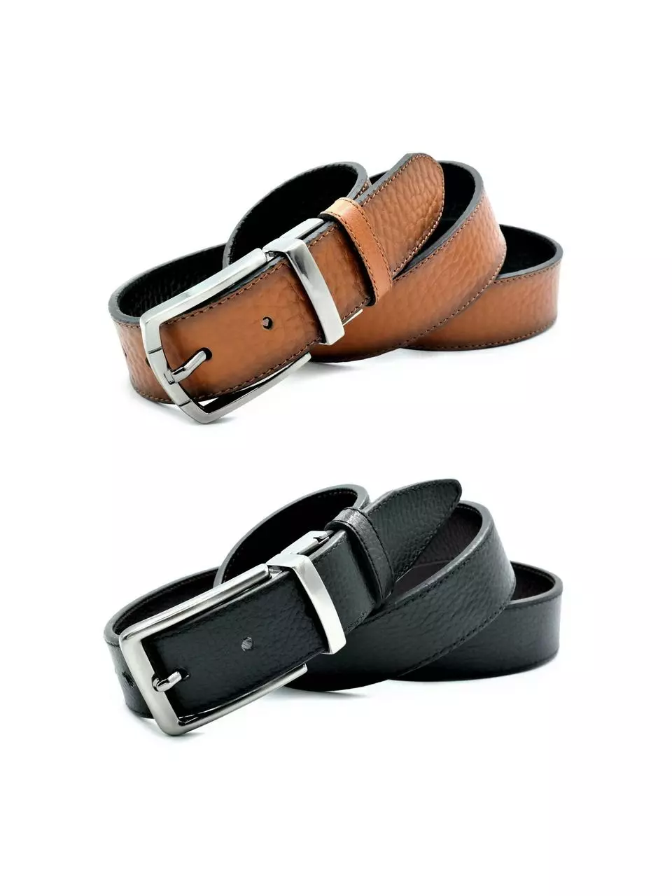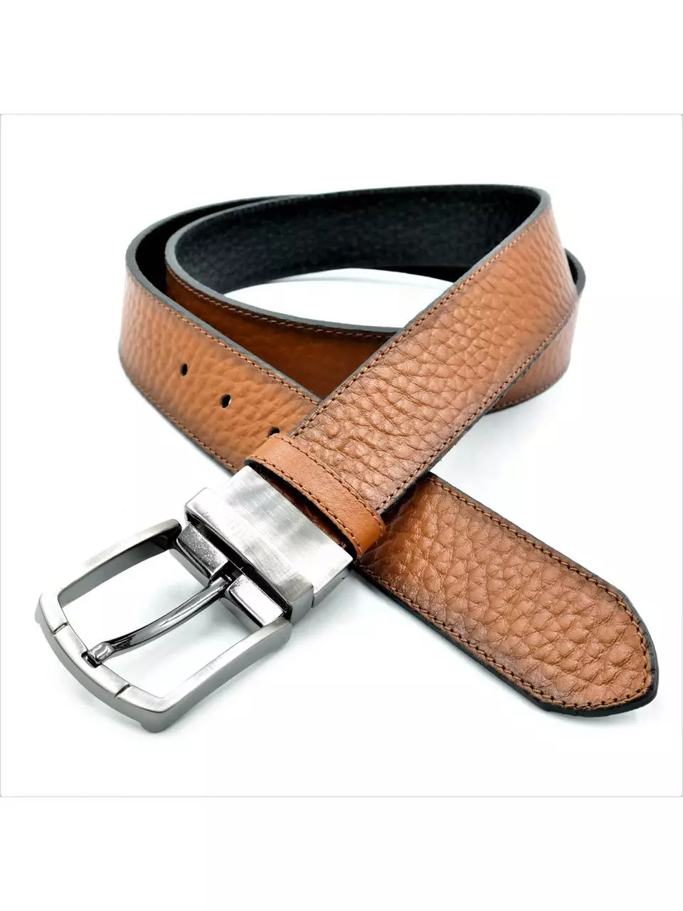 Чоловічий шкіряний ремінь двосторонній виготовлений із цільного