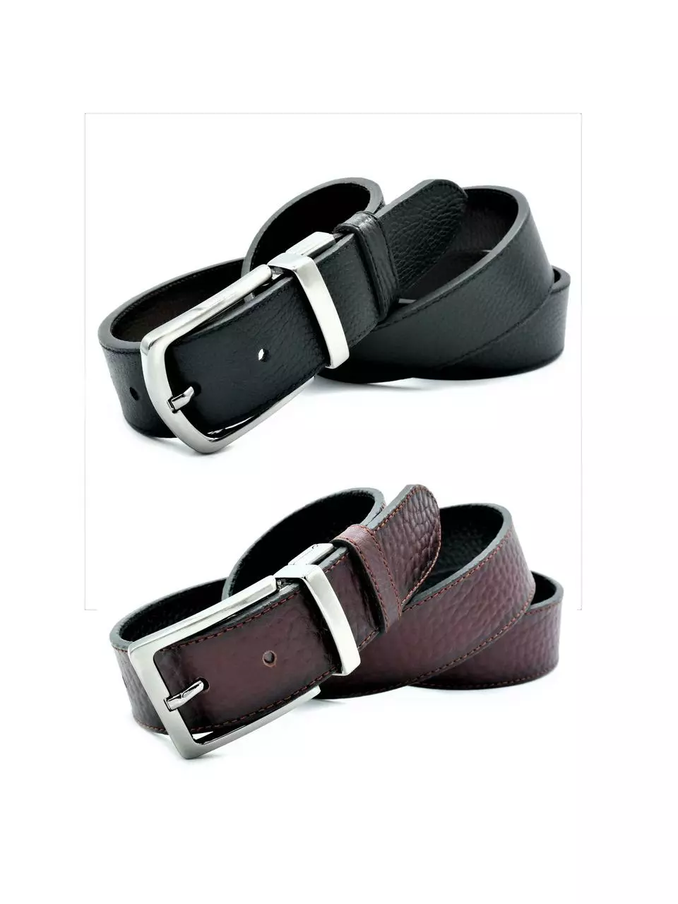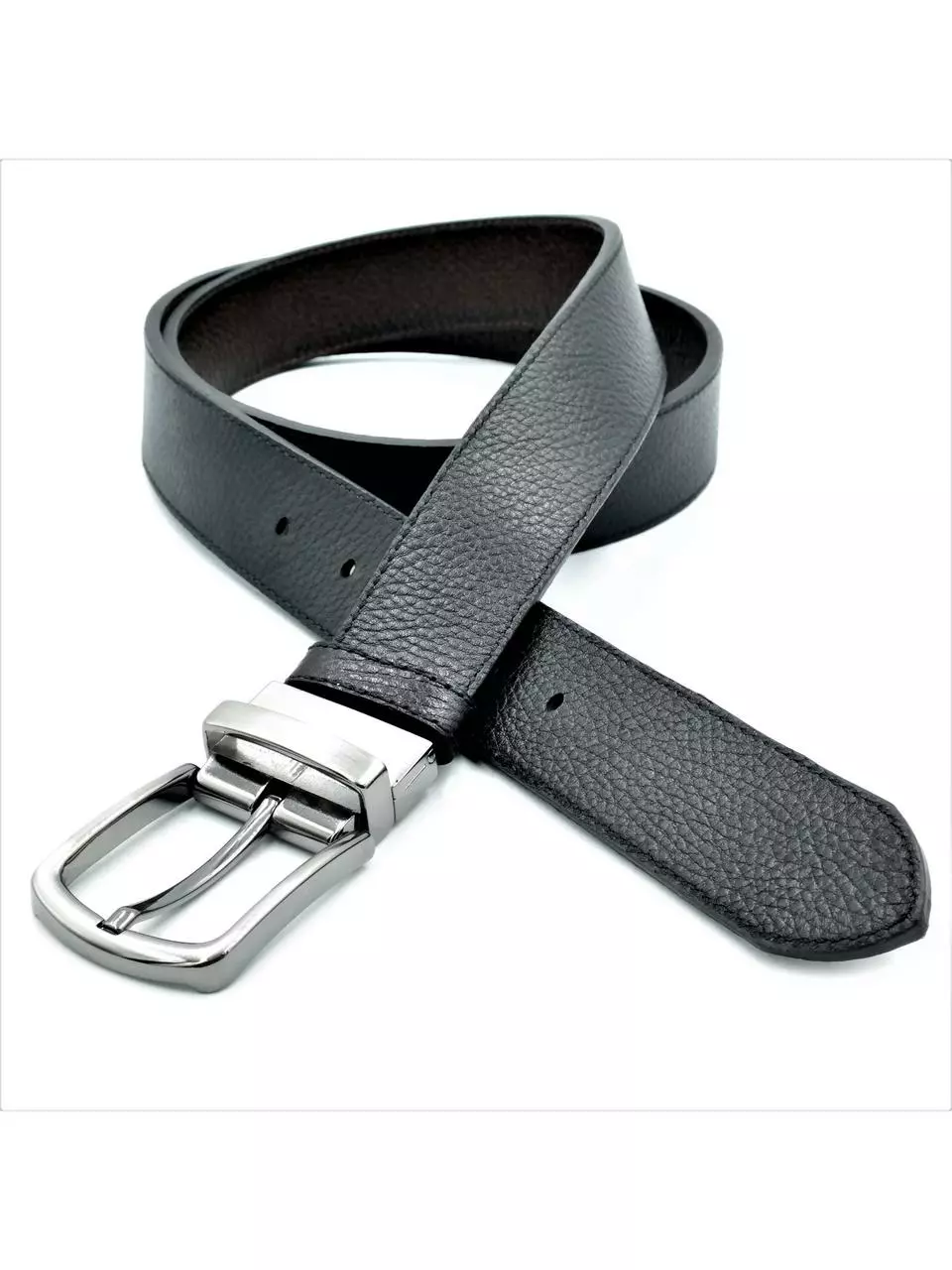 Чоловічий шкіряний ремінь двосторонній виготовлений із цільного