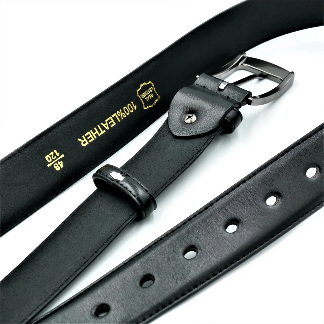 Ремень мужской брючный кожаный, классическая пряжка, ширина 3,5 см,