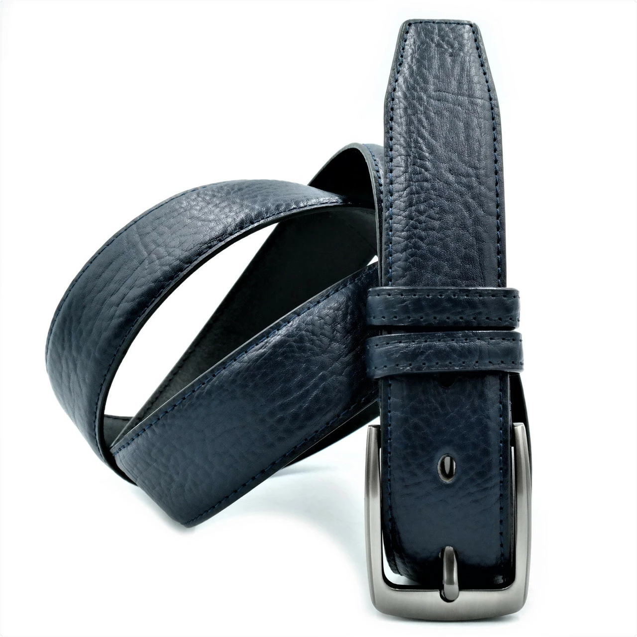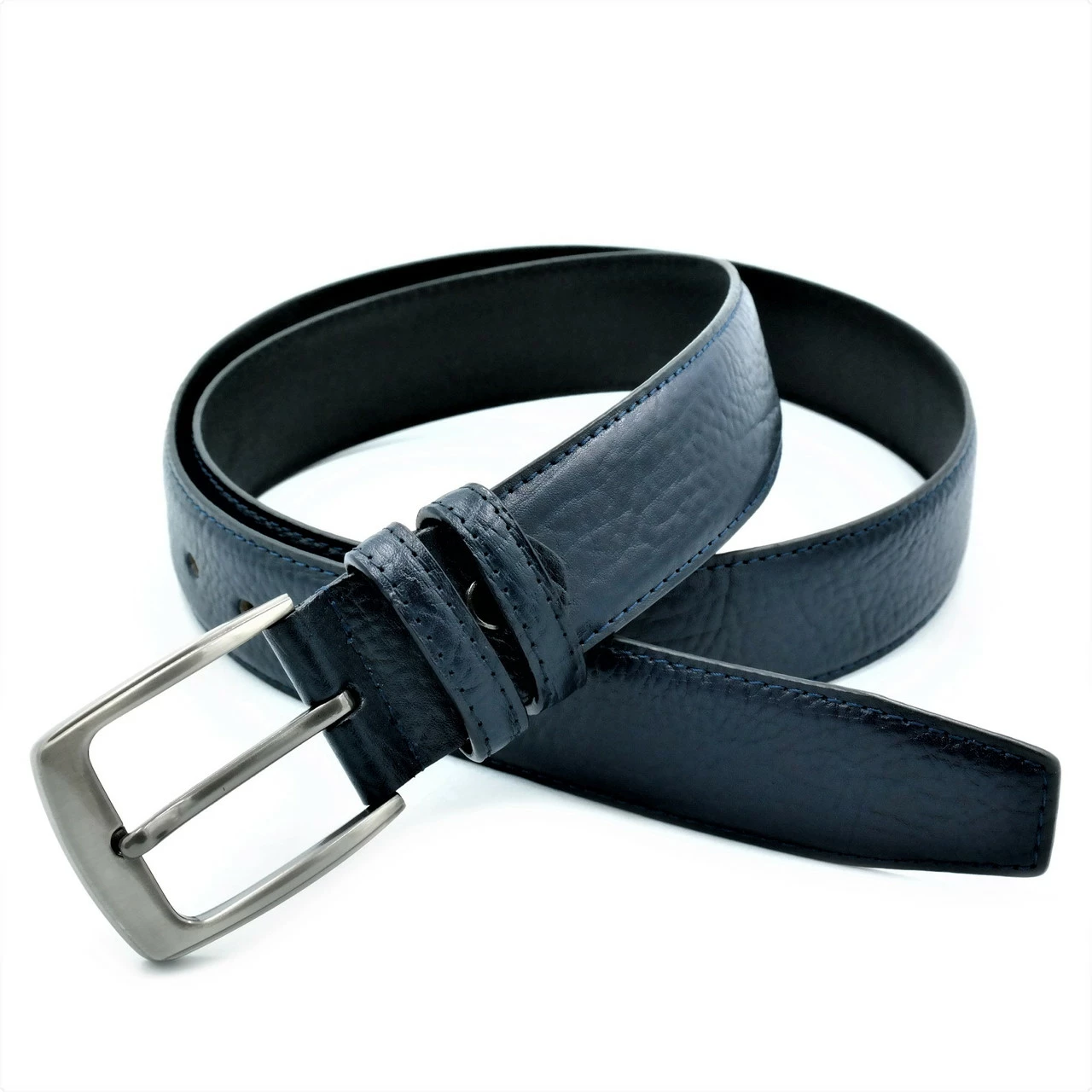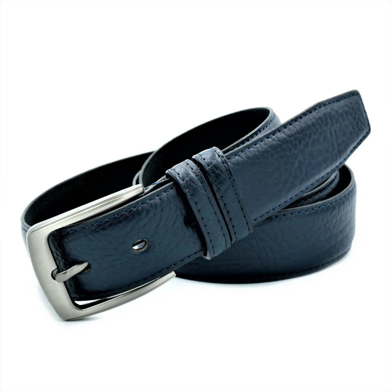 Кожаный мужской ремень Weatro Тёмно-синий nw-kit-35k-005