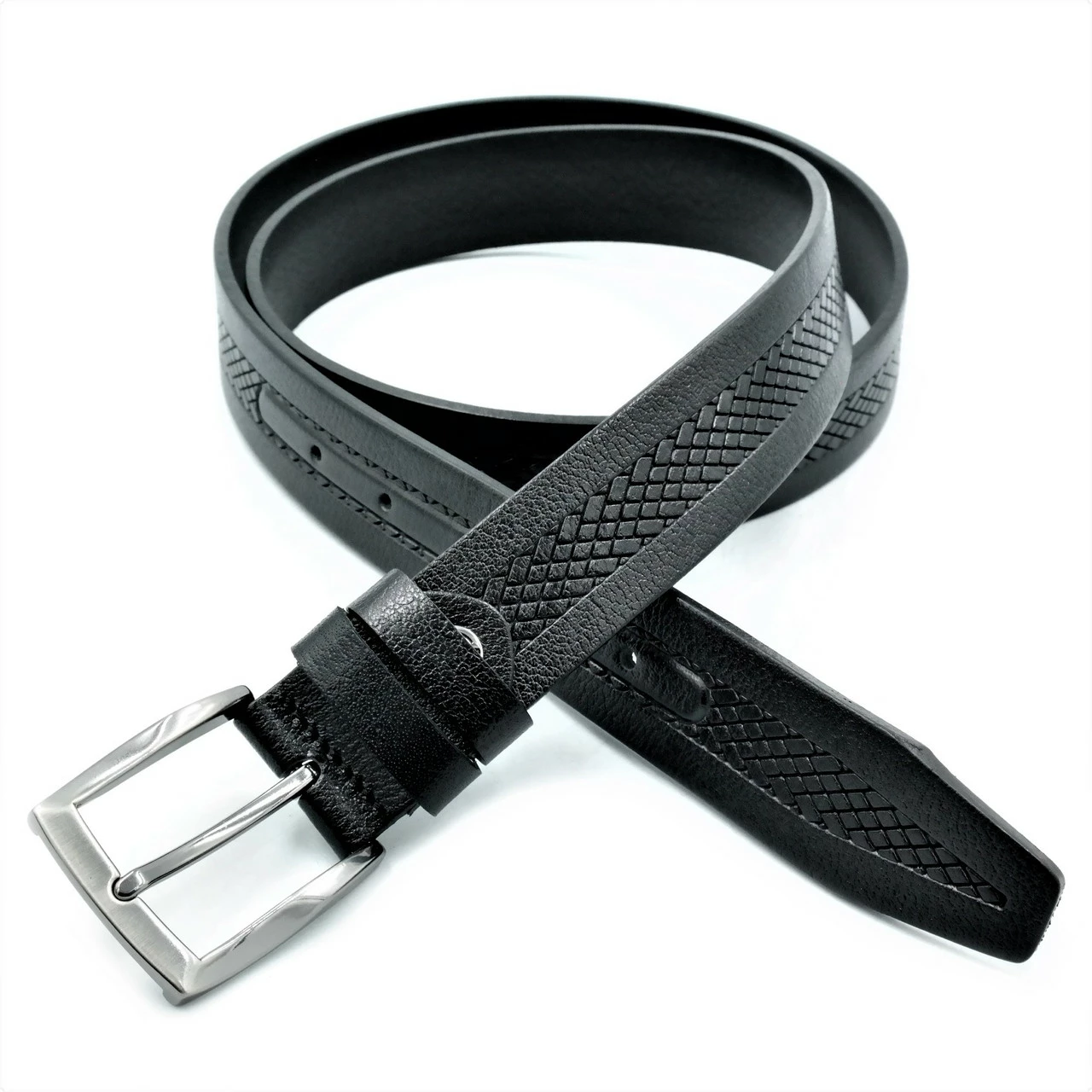 Ремень мужской брючный кожаный, классическая пряжка, ширина 3,5 см,