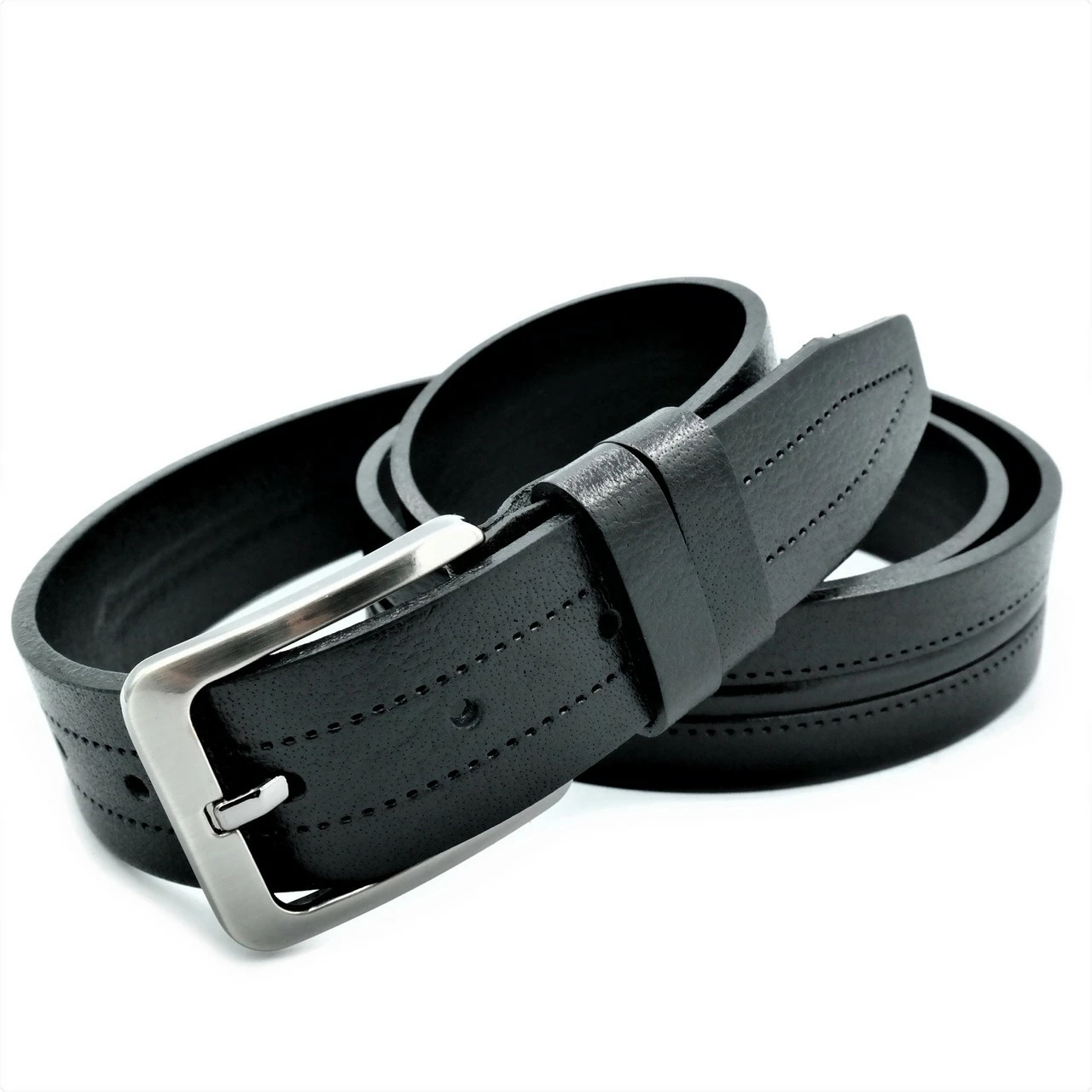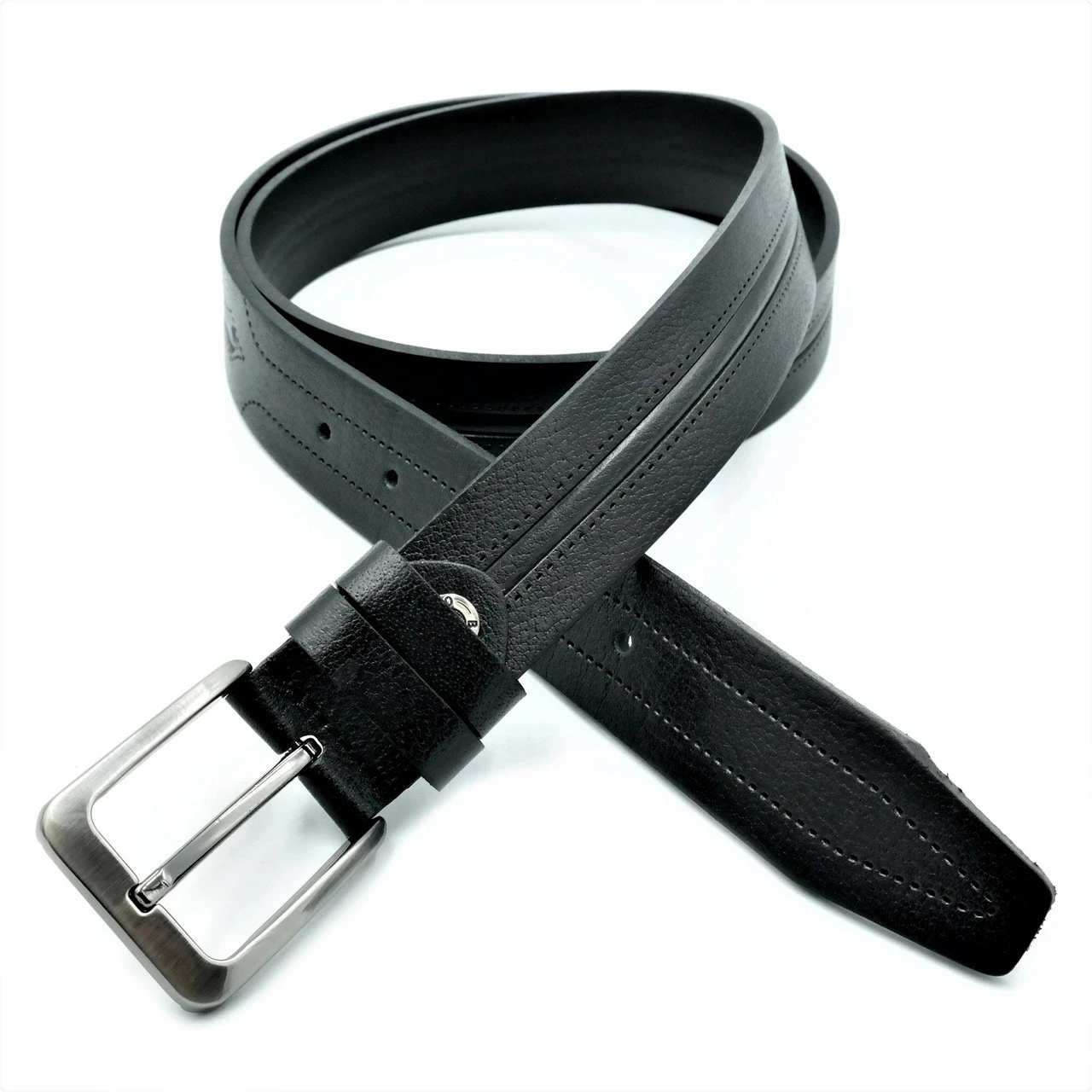 Ремень мужской брючный кожаный, классическая пряжка, ширина 3,5 см,