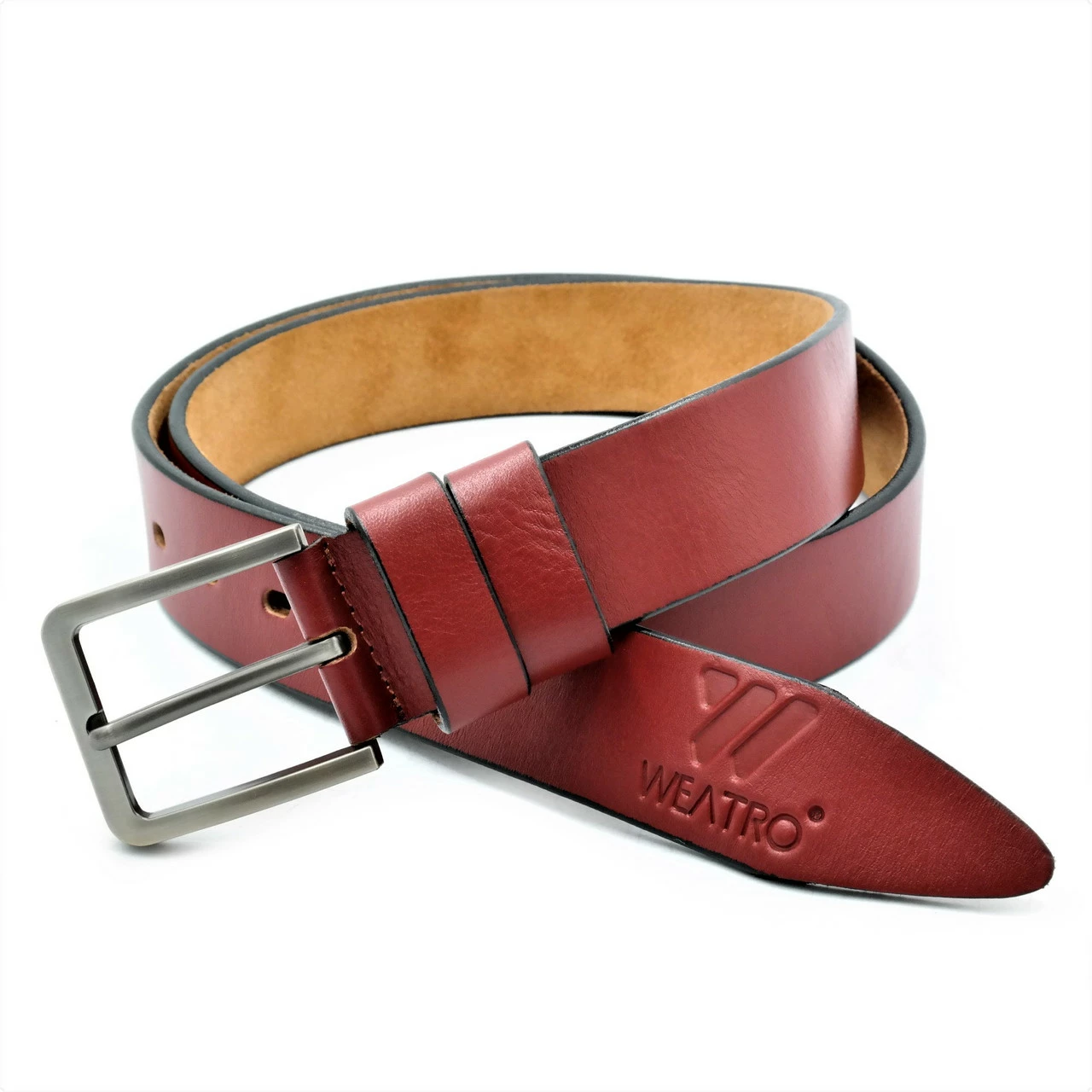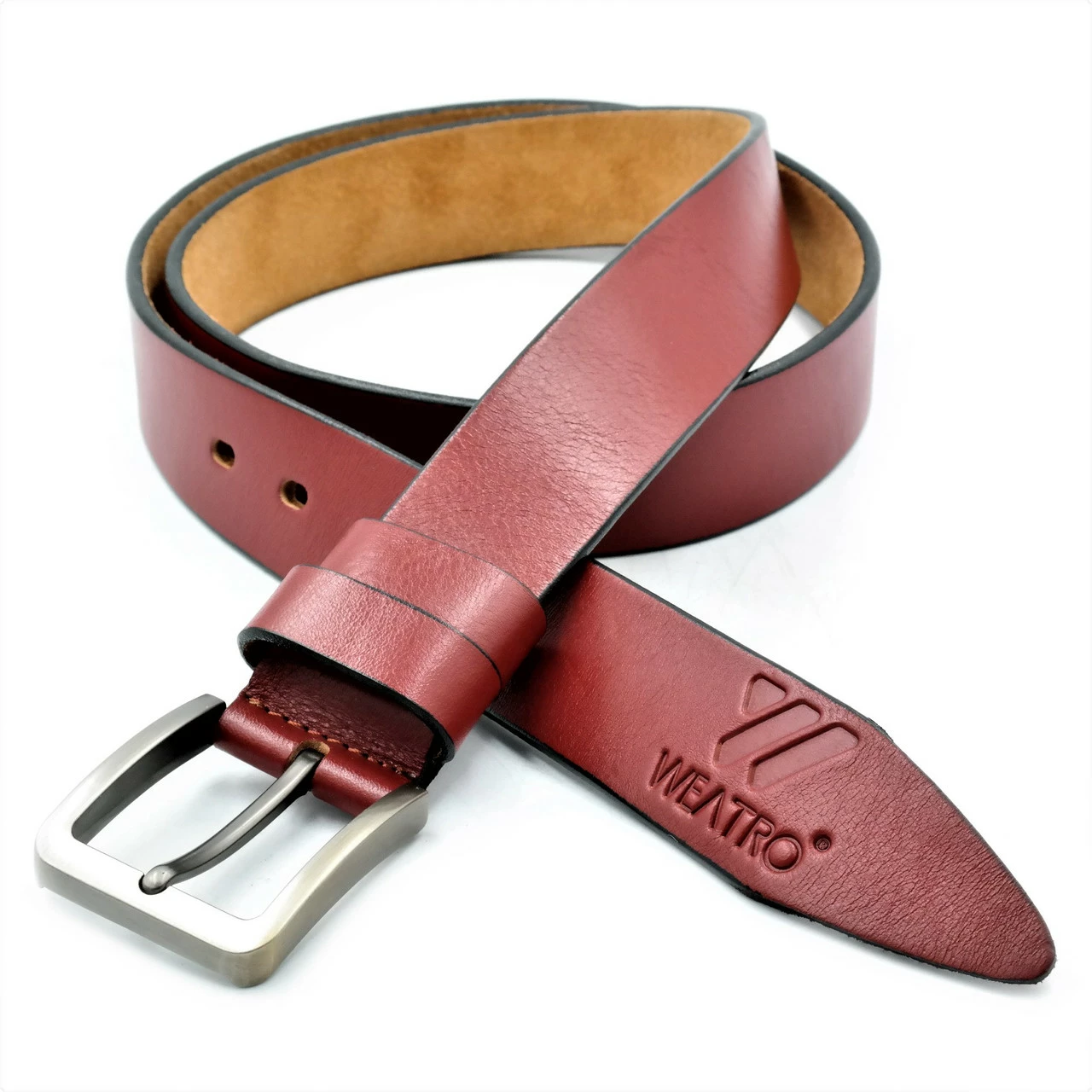 Кожаный мужской ремень Weatro Цвет Красный m-kozh38-wtrua-0012