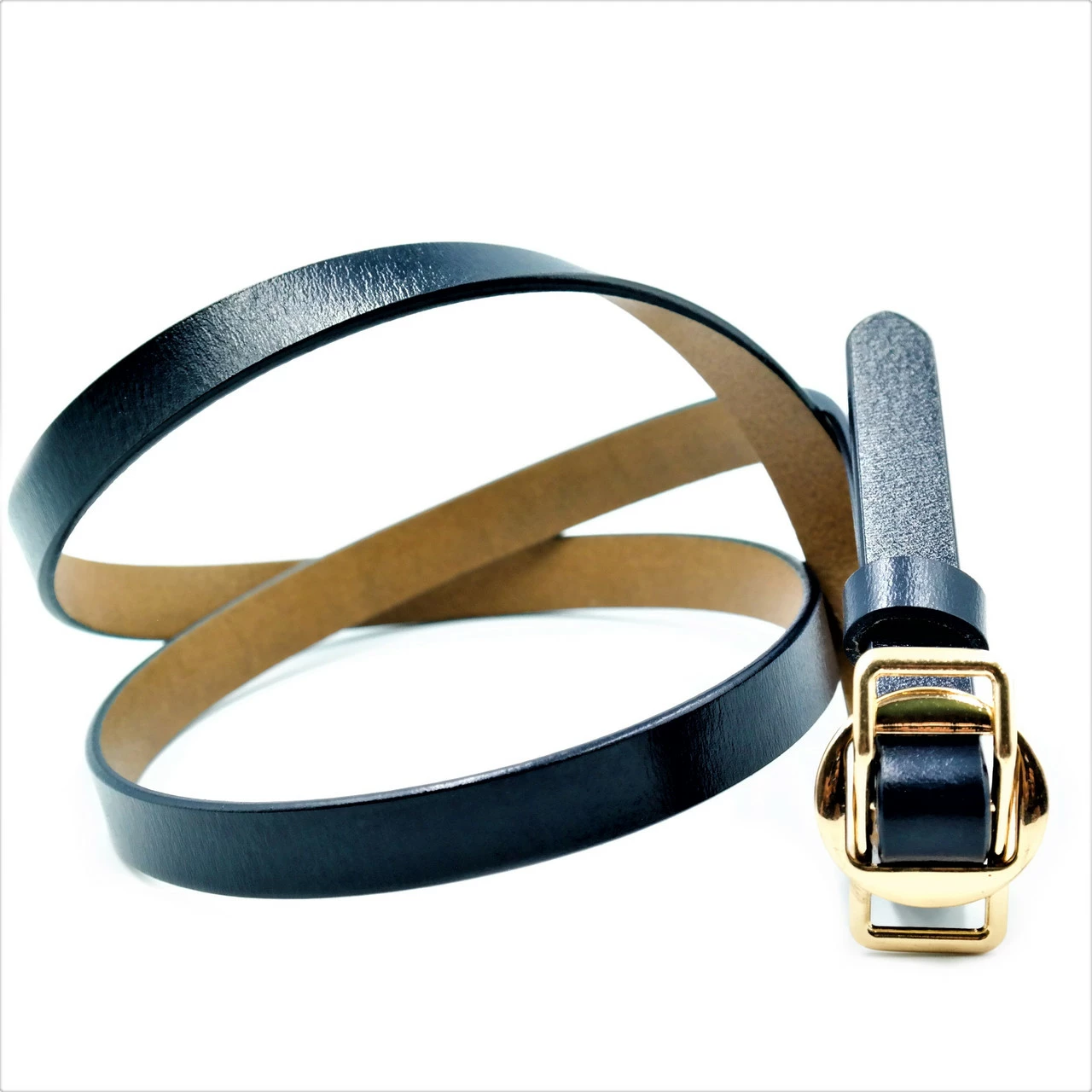 Ремень женский кожаный, зажимная пряжка, ширина 1,5 см, длина