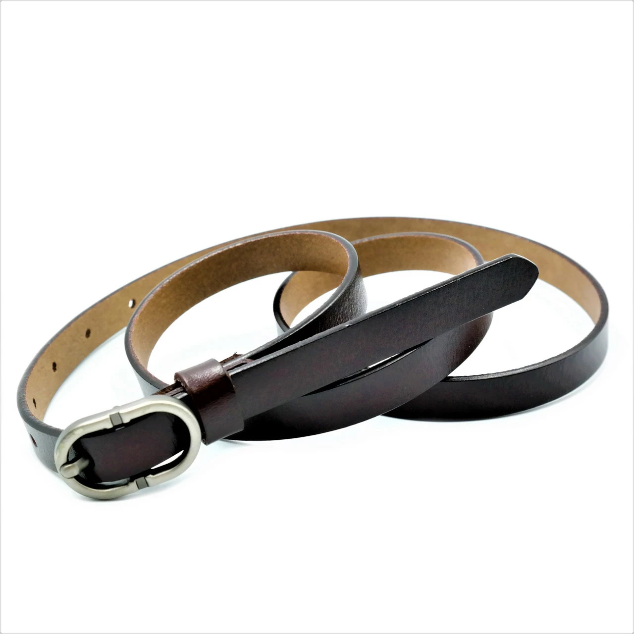 Ремень женский кожаный, классическая пряжка, ширина 1,5 см, длина