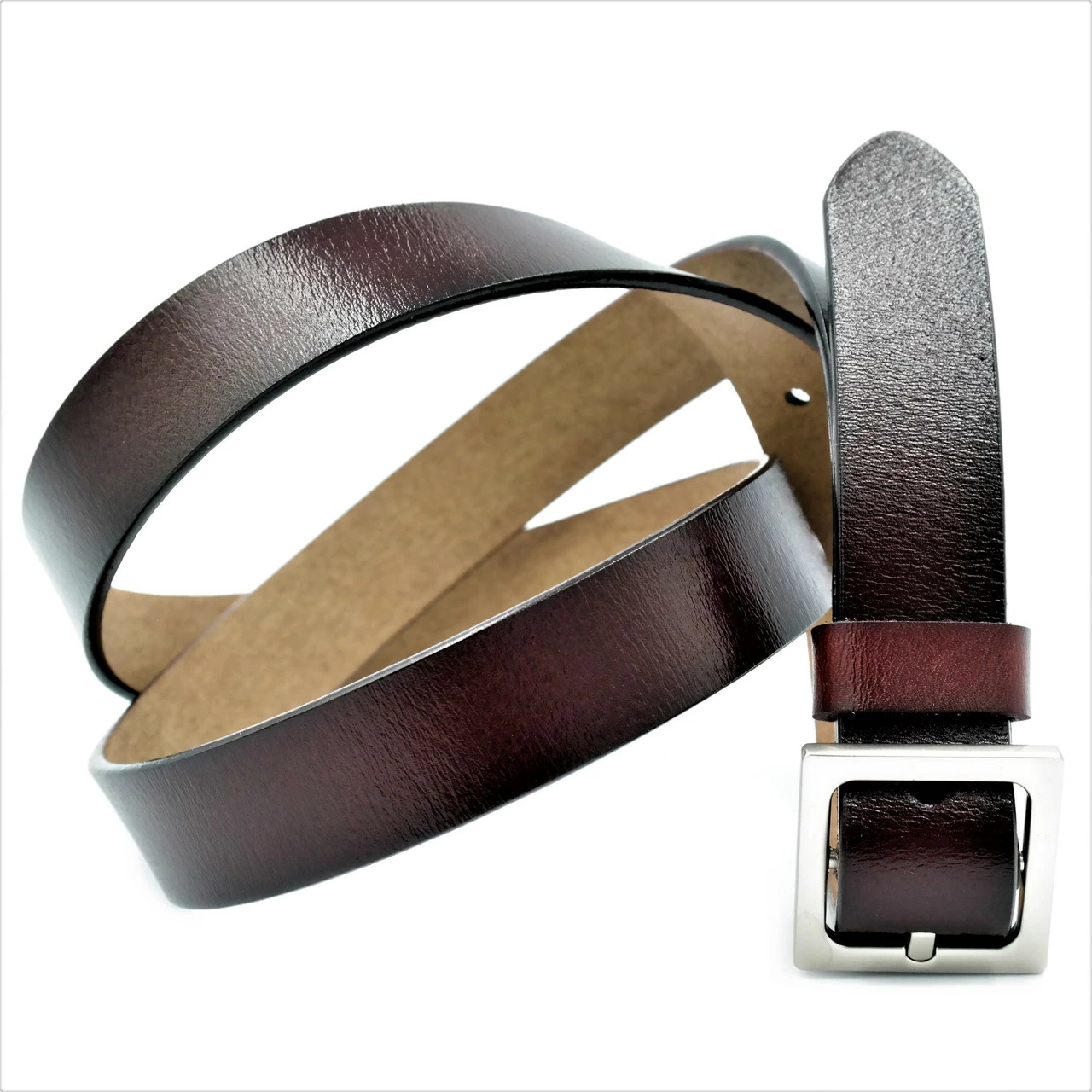 Ремень женский кожаный, классическая пряжка, ширина 2,5 см, длина