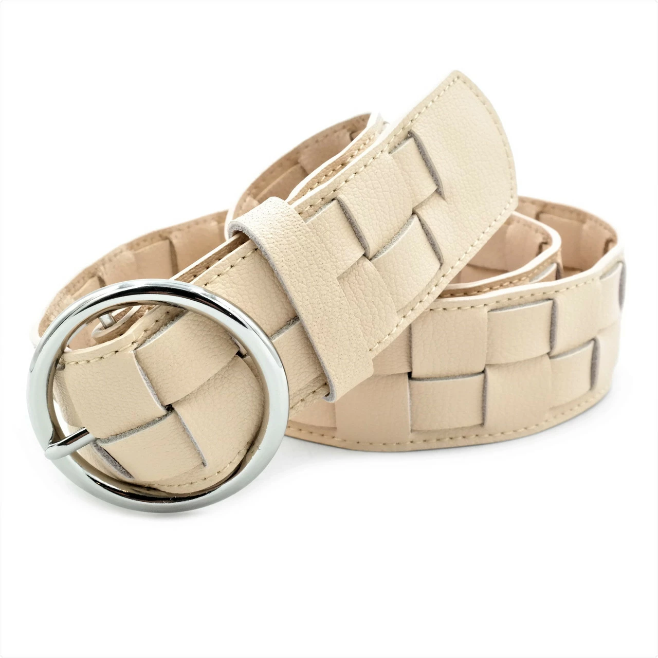 Кожаный женский ремень Weatro Бежевый koz-zh40-kit-058