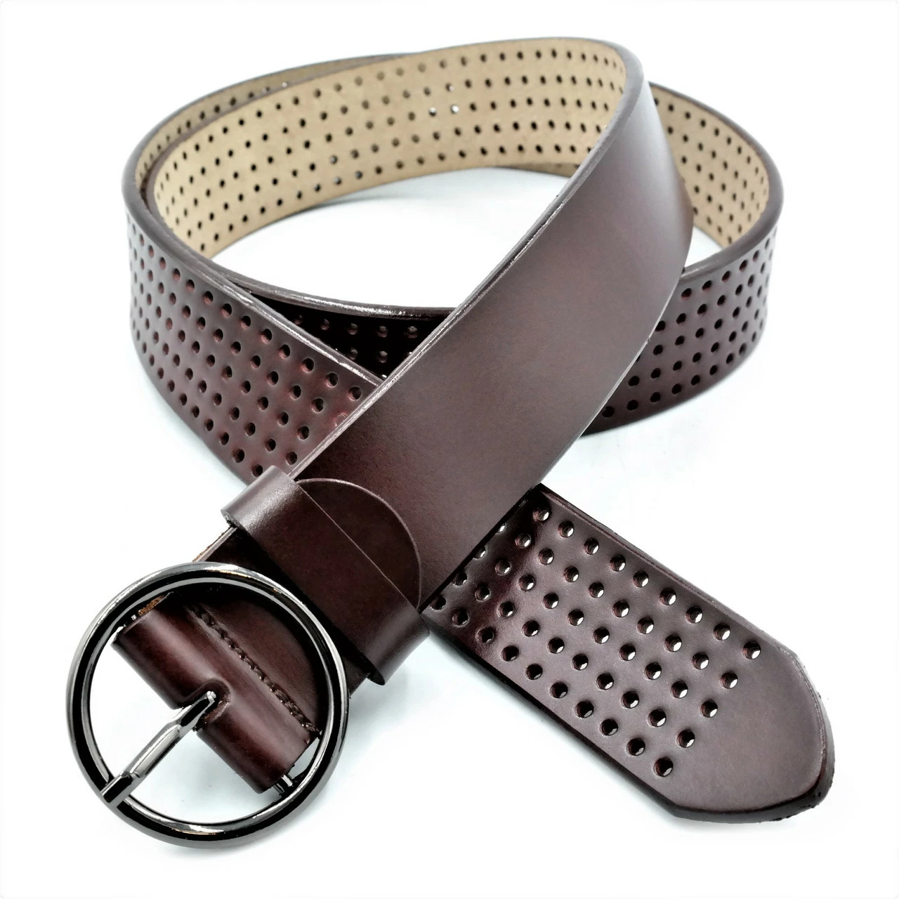 Кожаный женский ремень Weatro Коричневый koz-zh35-kit-032