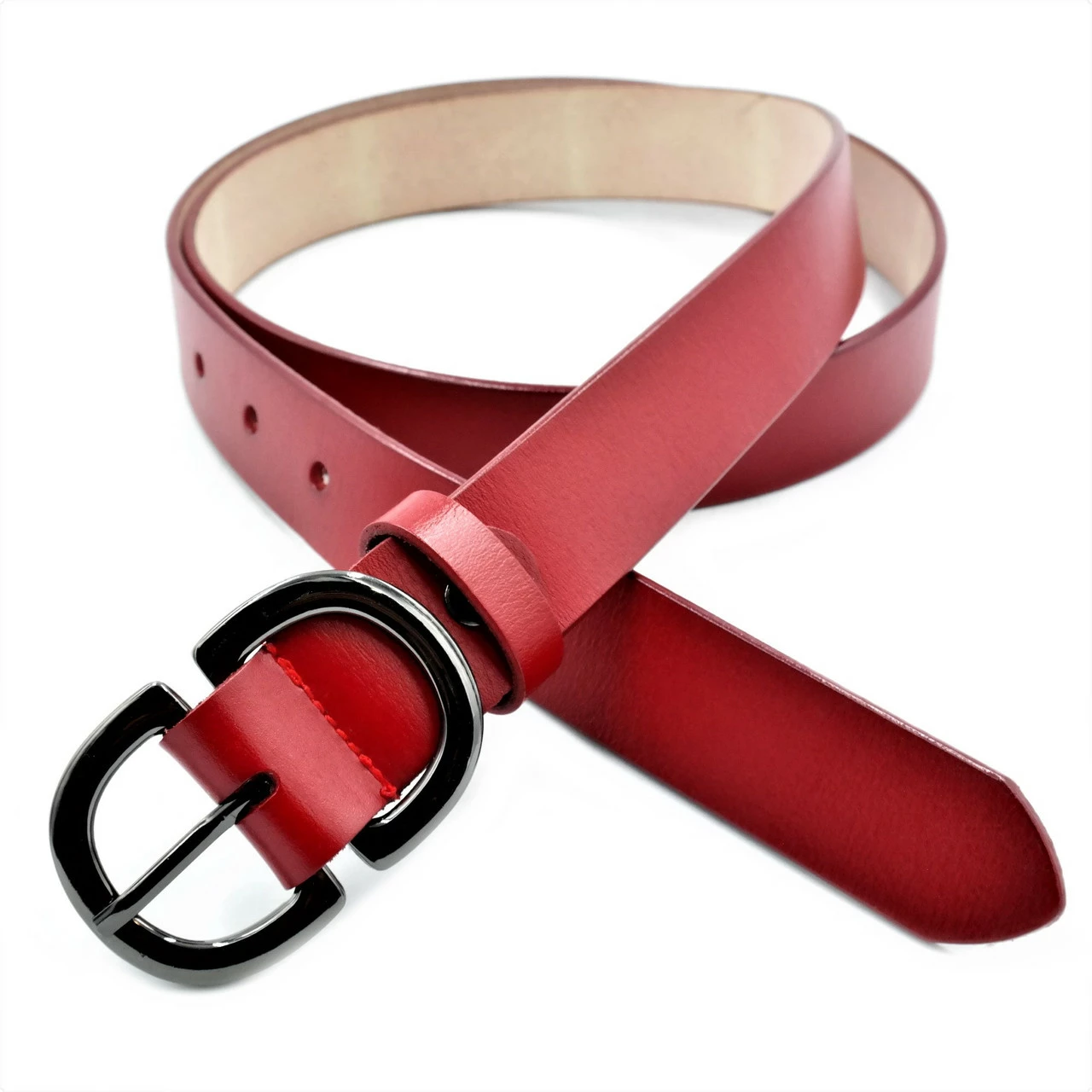 Кожаный женский ремень Weatro Красный koz-zh3-kit-08