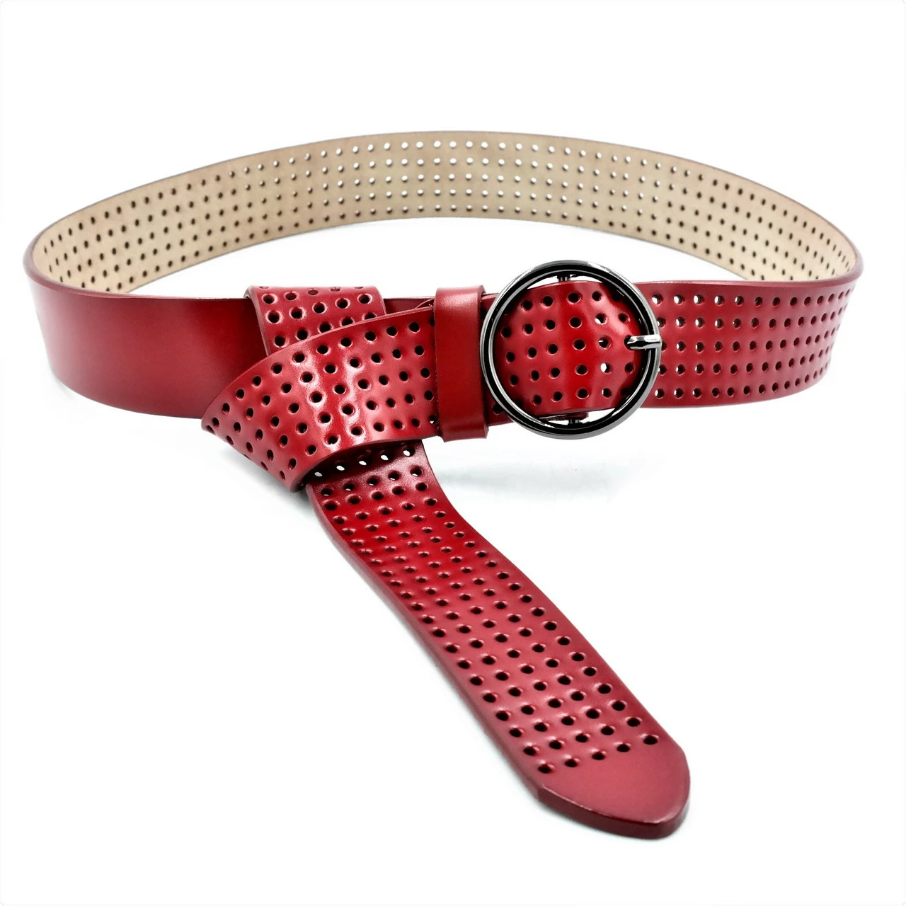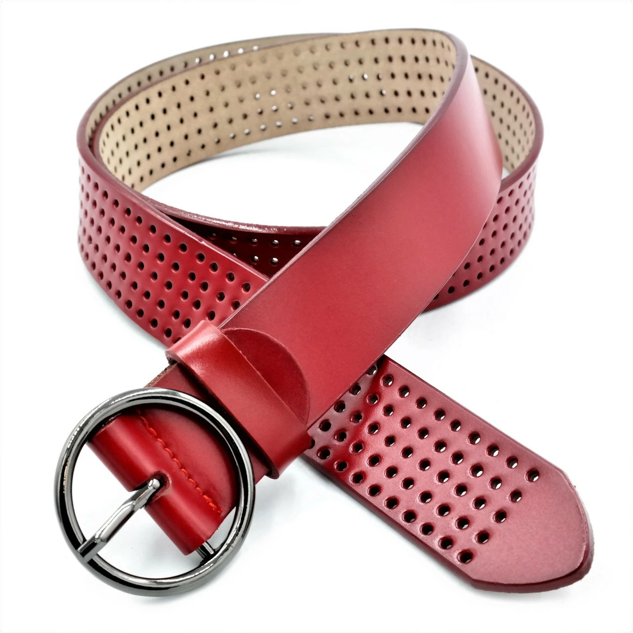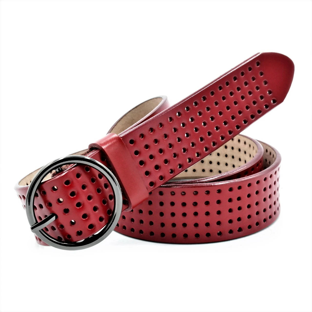 Кожаный женский ремень Weatro Красный koz-zh35-kit-034
