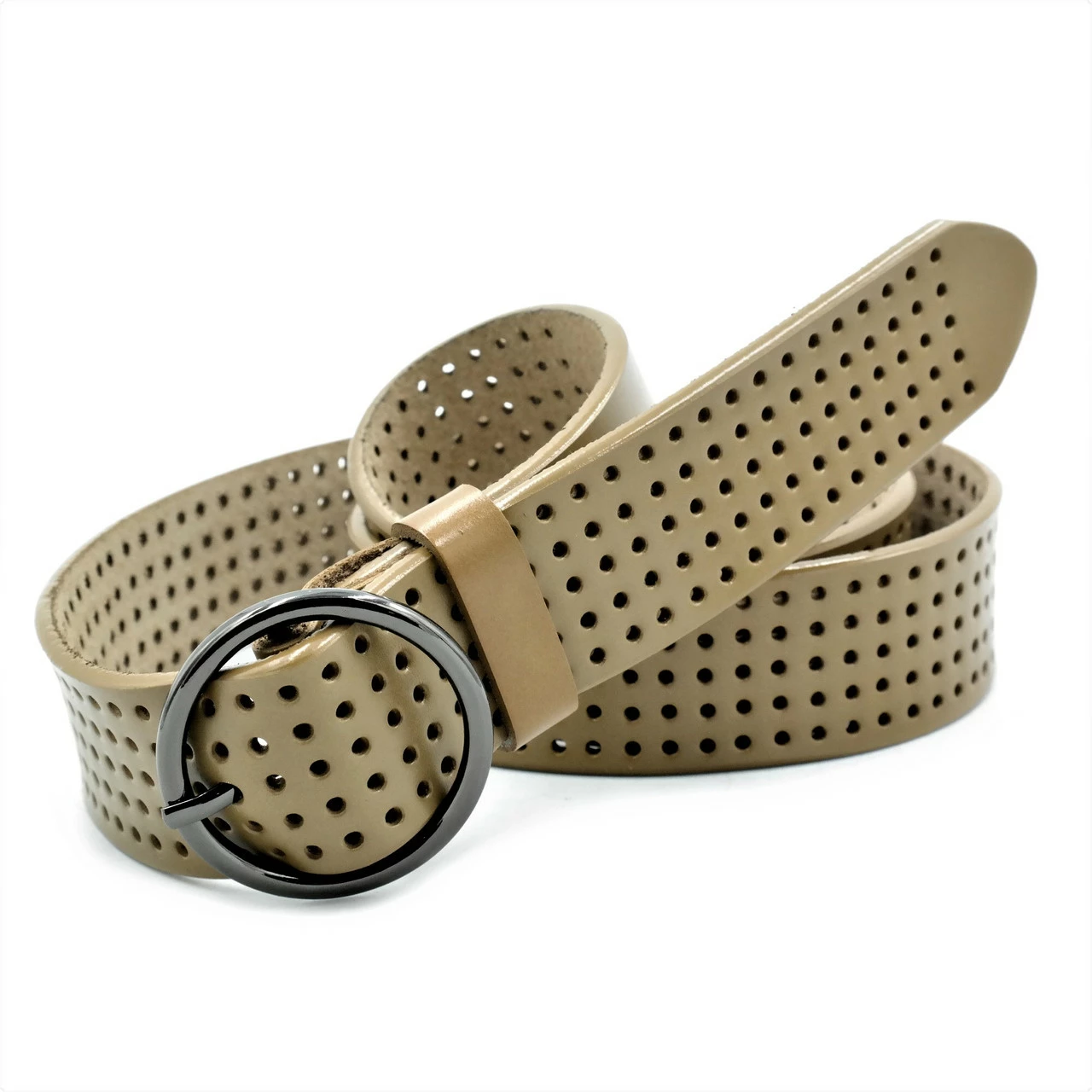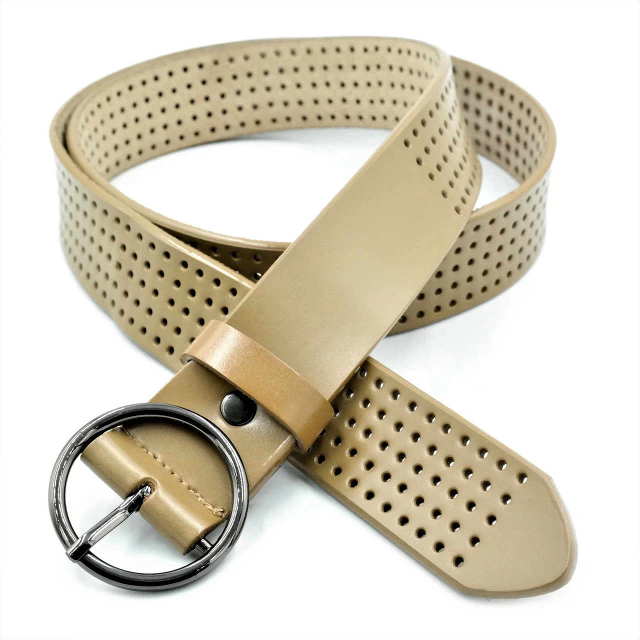 Кожаный женский ремень Weatro Оливковый koz-zh35-kit-035