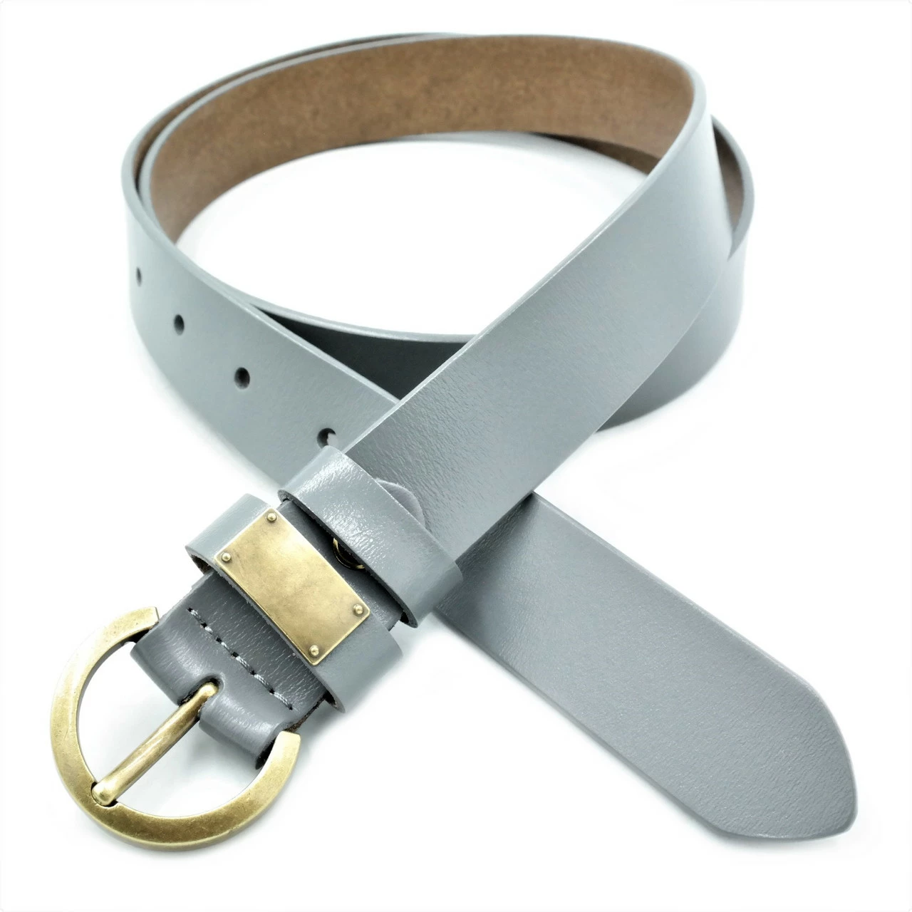 Кожаный женский ремень Weatro Серый koz-zh3-kit-018