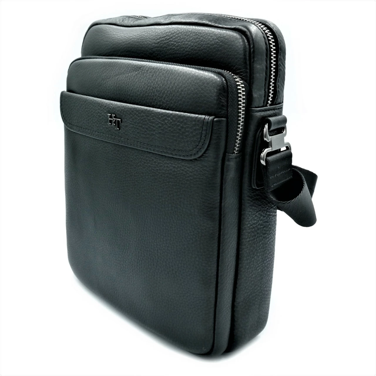 Мужская кожаная сумка H.T.Leather Чёрного цвета 1603-3