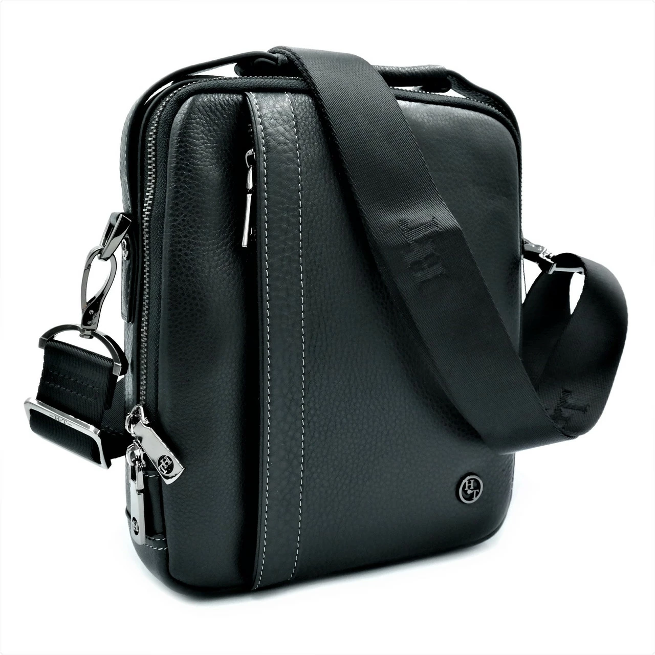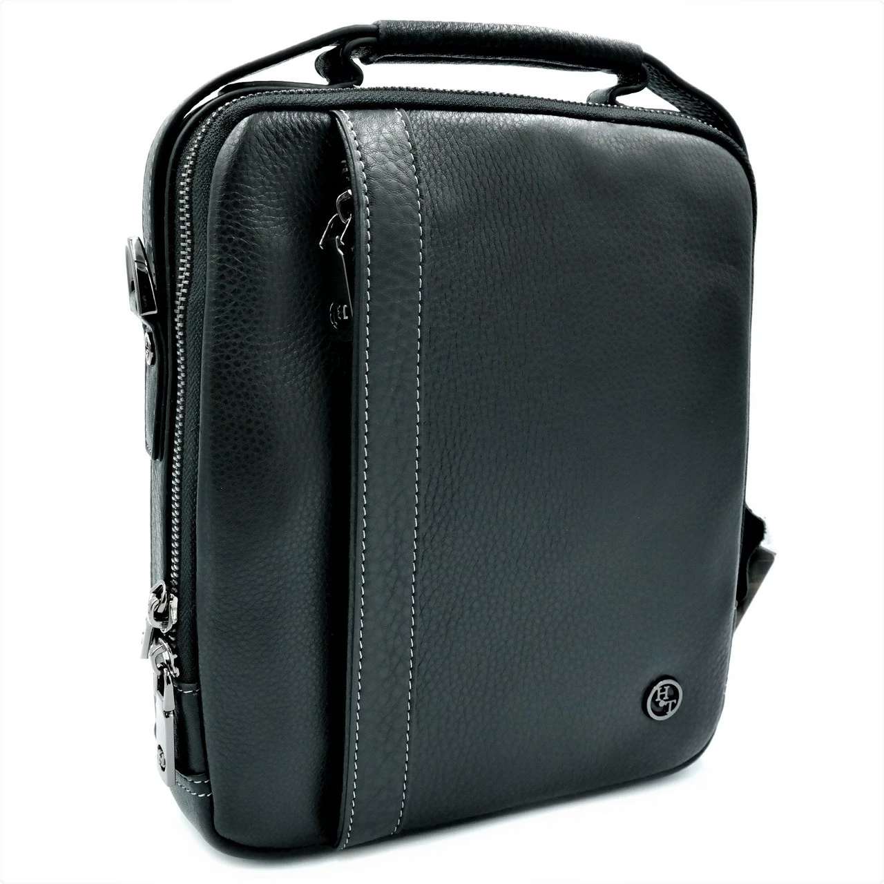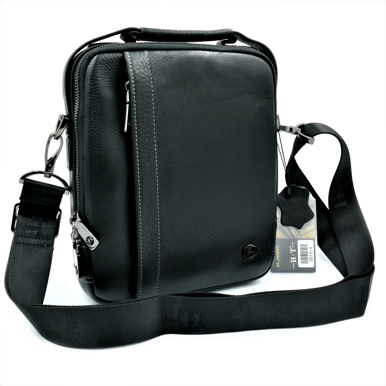 Мужская кожаная сумка H.T.Leather Чёрного цвета 2015-4