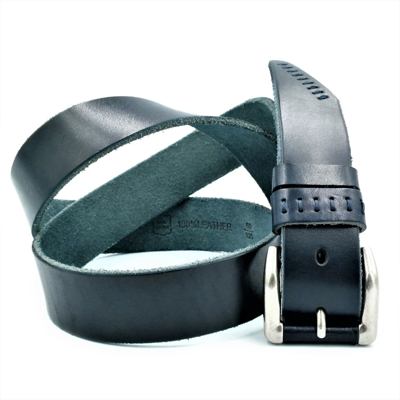 Мужской кожаный ремень Weatro new-m-40k-020 Тёмно-синий