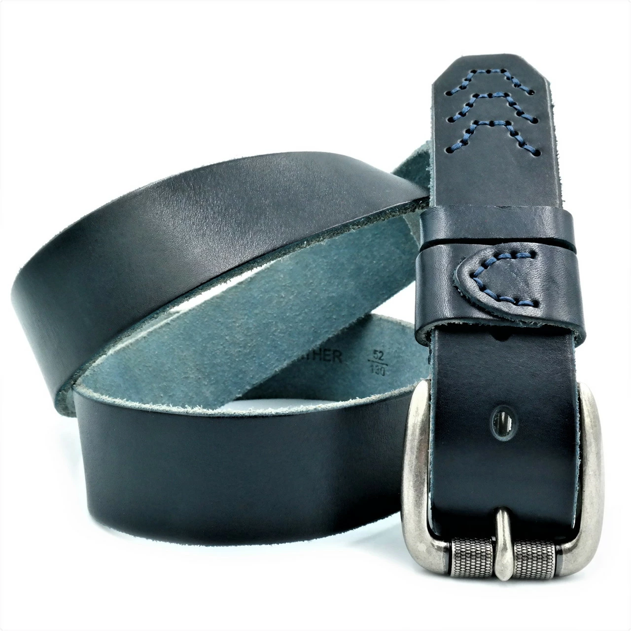 Мужской кожаный ремень Weatro new-m-40k-021 Тёмно-синий