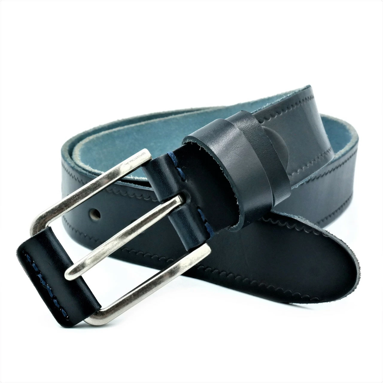 Мужской кожаный ремень Weatro new-m-40k-023 Тёмно-синий