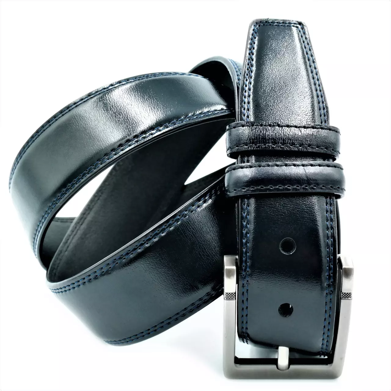 Мужской кожаный ремень Weatro newm-4k-0001 Тёмно-синий