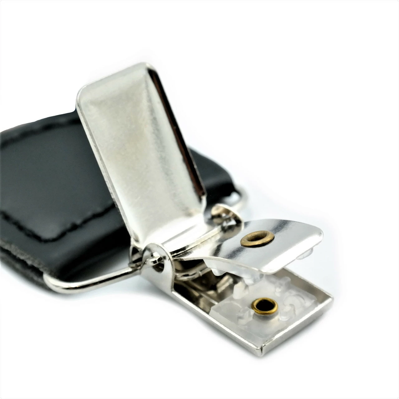 с помощью металических зажимов. Ширина 3 см. Длина на возраст 5-12