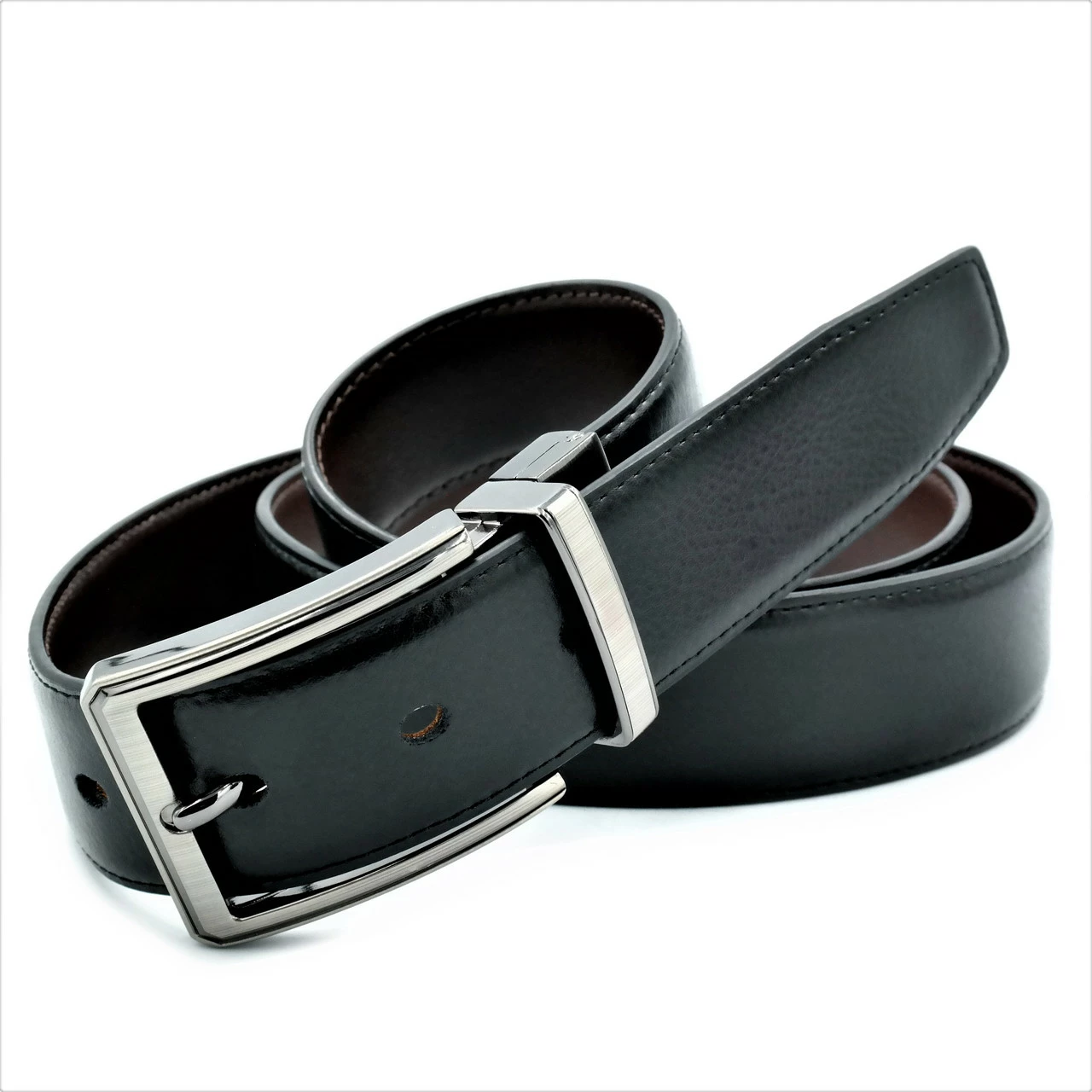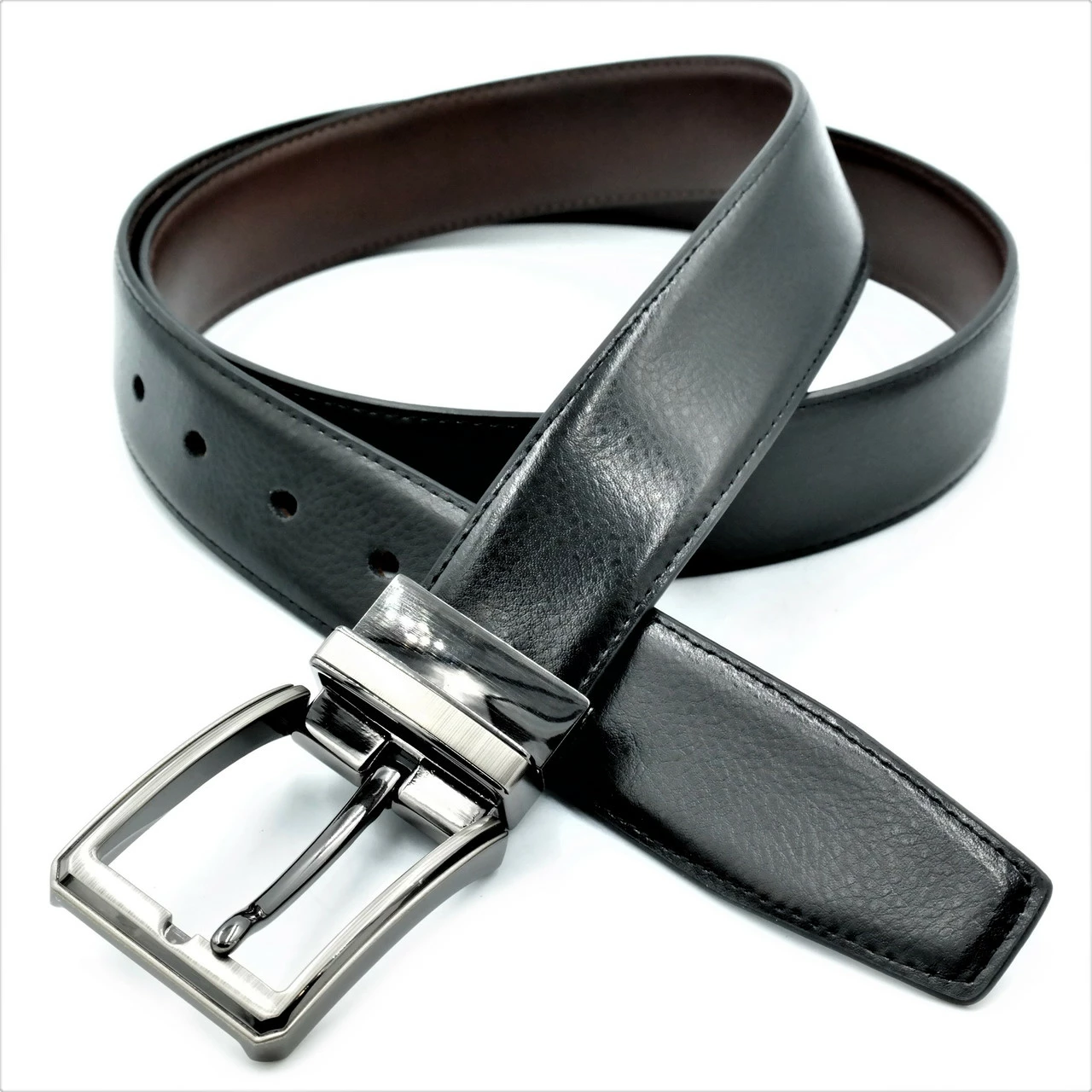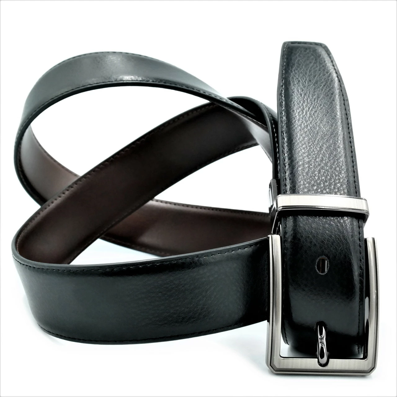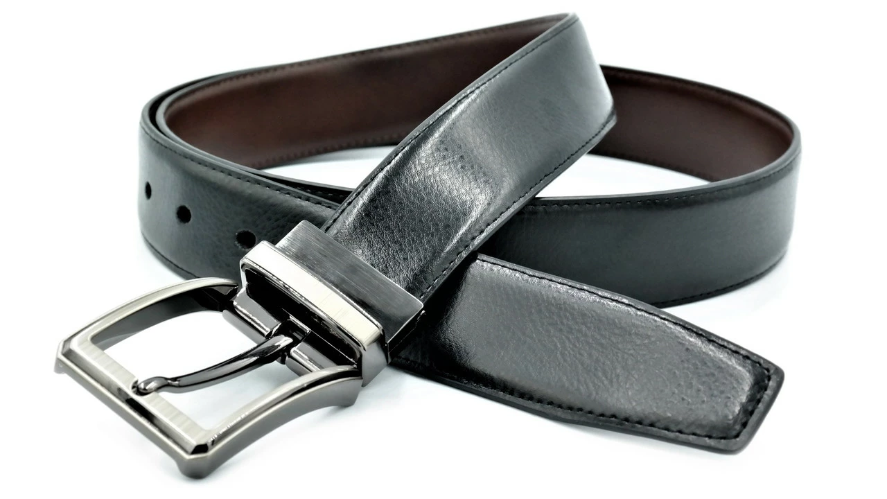 Ремень мужской двухсторонний кожаный, металлическая пряжка, ширина