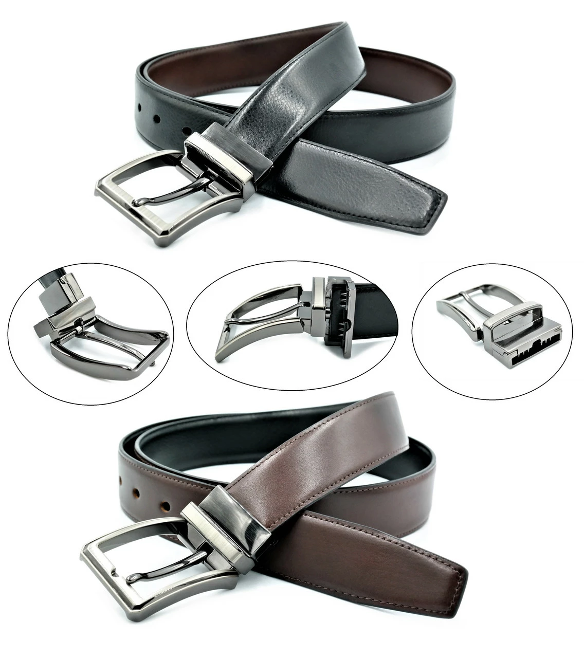 Ремень мужской двухсторонний Черный+Коричневый Weatro new-aln-006