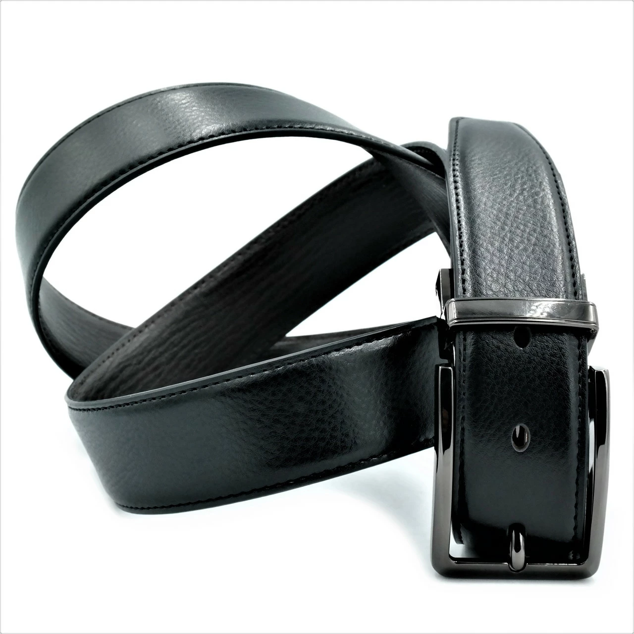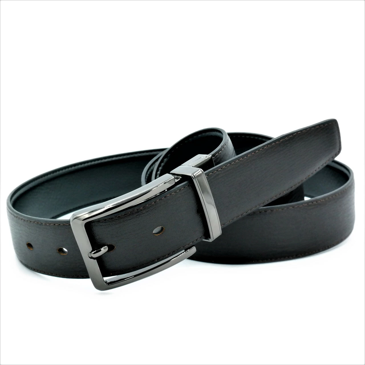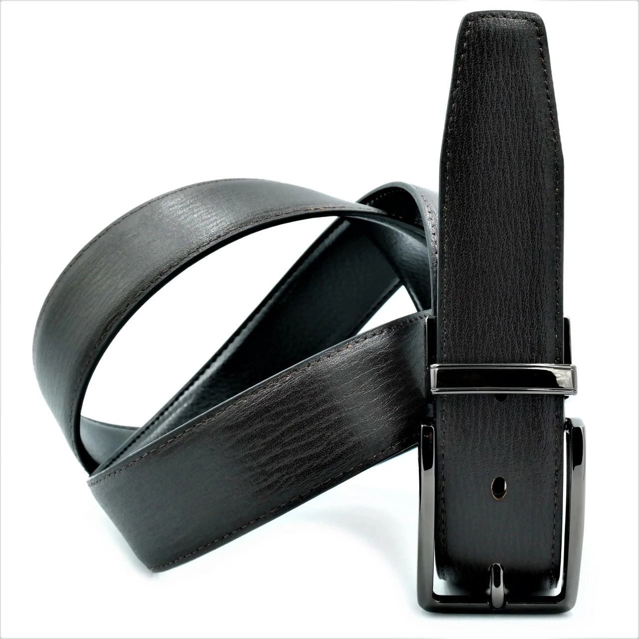 Ремень мужской двухсторонний кожаный, металлическая пряжка, ширина