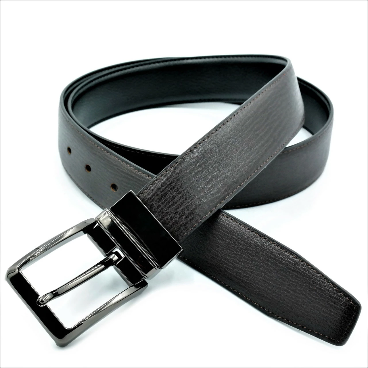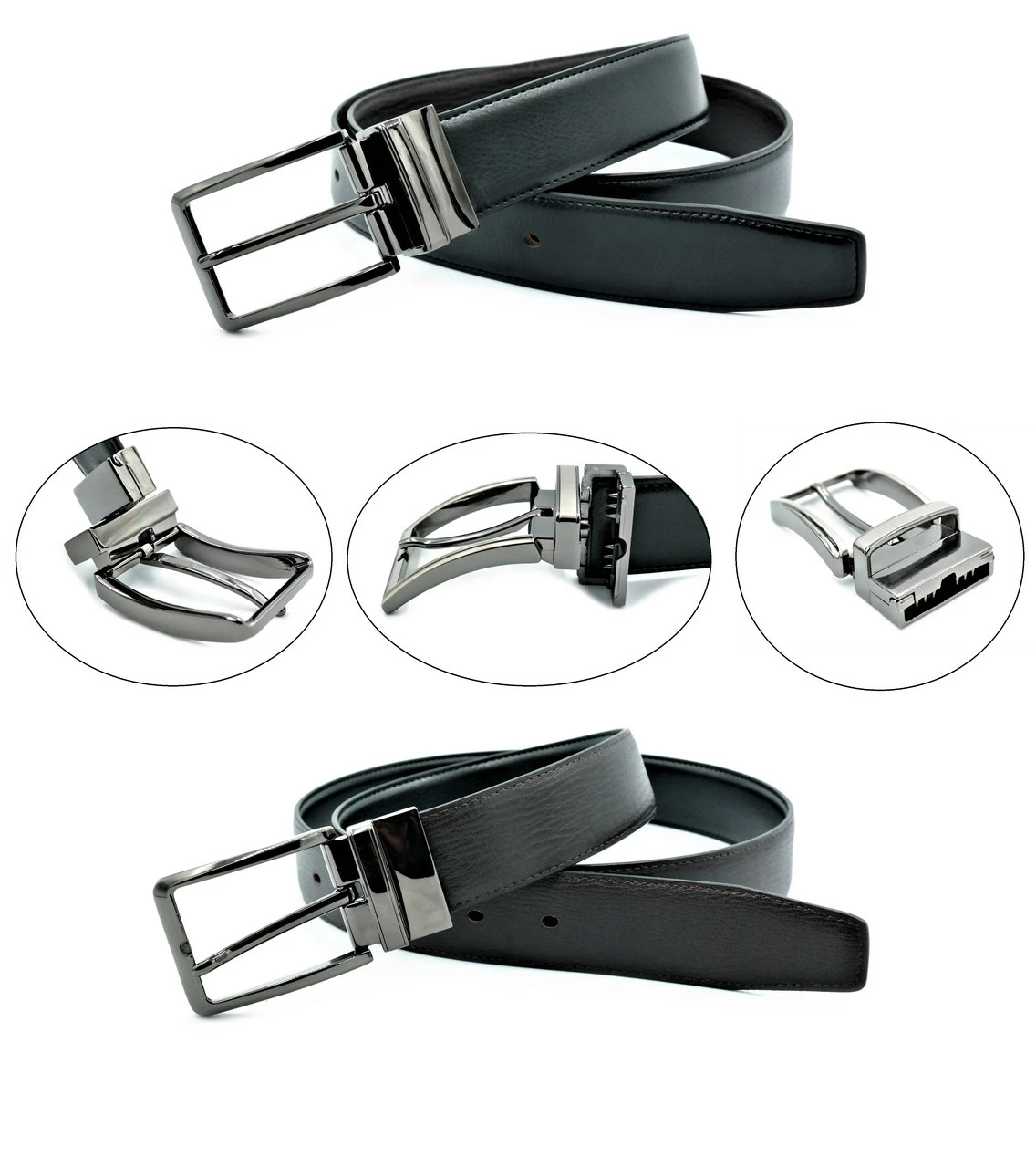 Ремень мужской двухсторонний Черный+Тёмно-коричневый Weatro new-aln-008