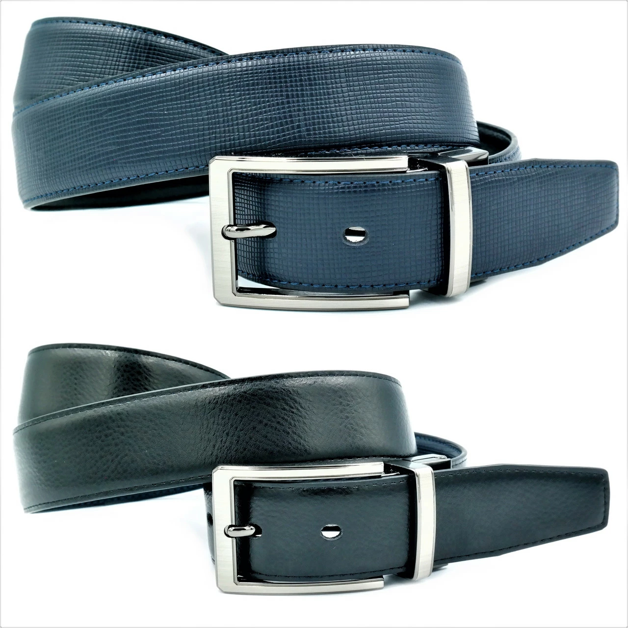 Ремень мужской двухсторонний Weatro Синий + Чёрный 0411m-3.5k