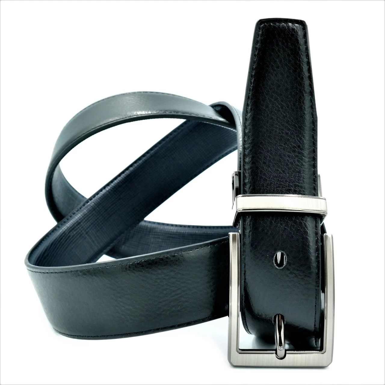 Ремень мужской двухсторонний кожаный, металлическая пряжка, ширина