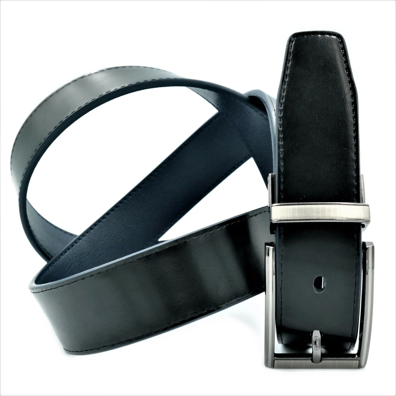 Ремень мужской двухсторонний кожаный, металлическая пряжка, ширина