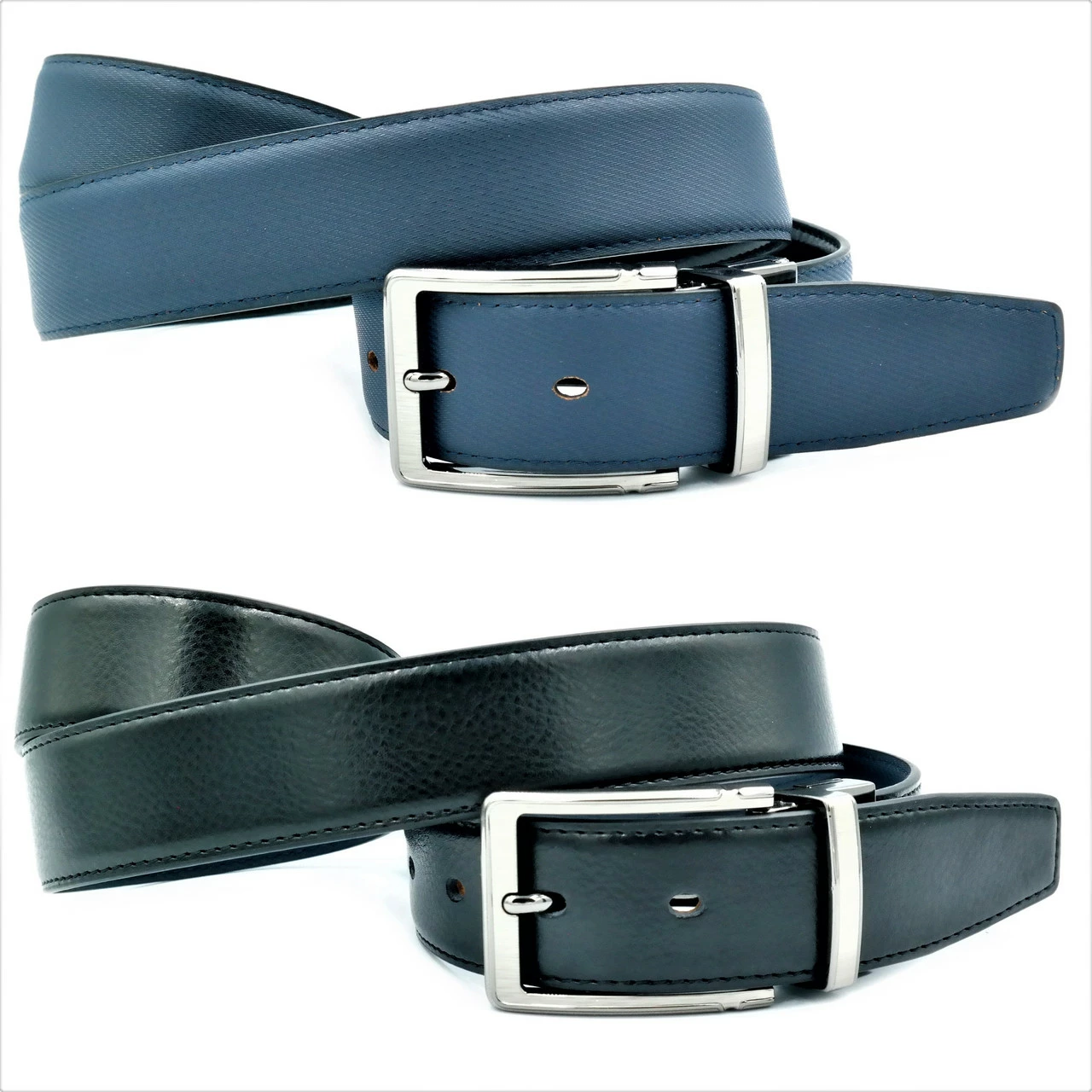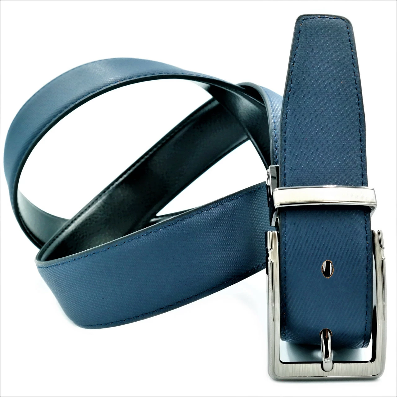 Ремень мужской двухсторонний Weatro Синий + Чёрный 0418m-3.5k