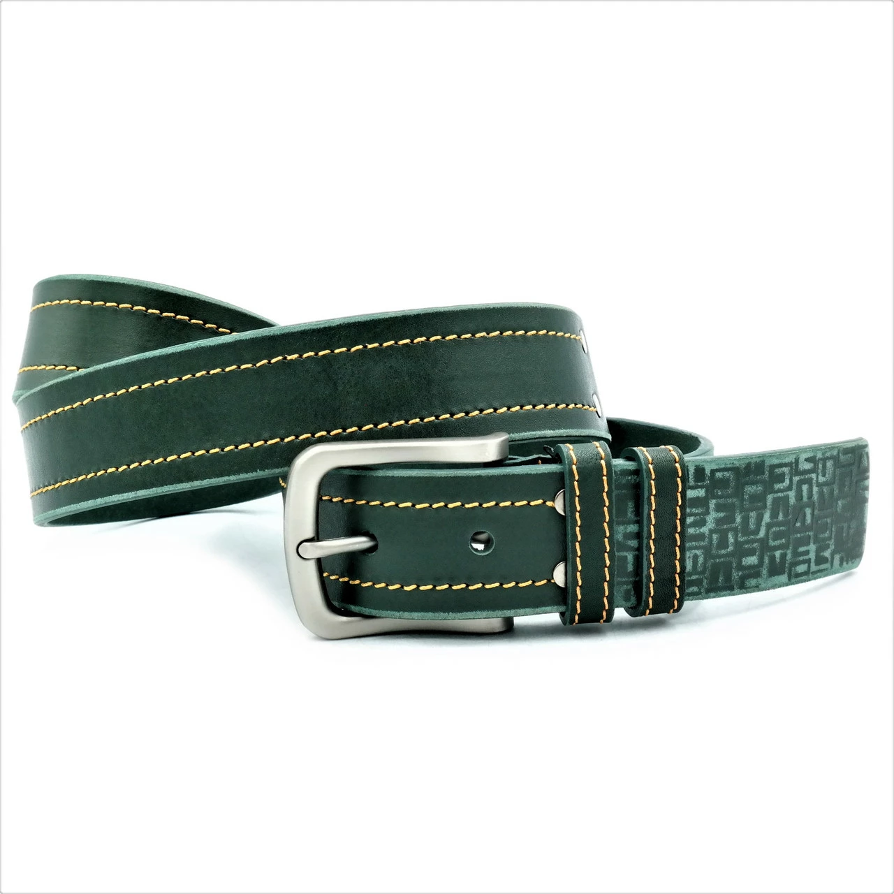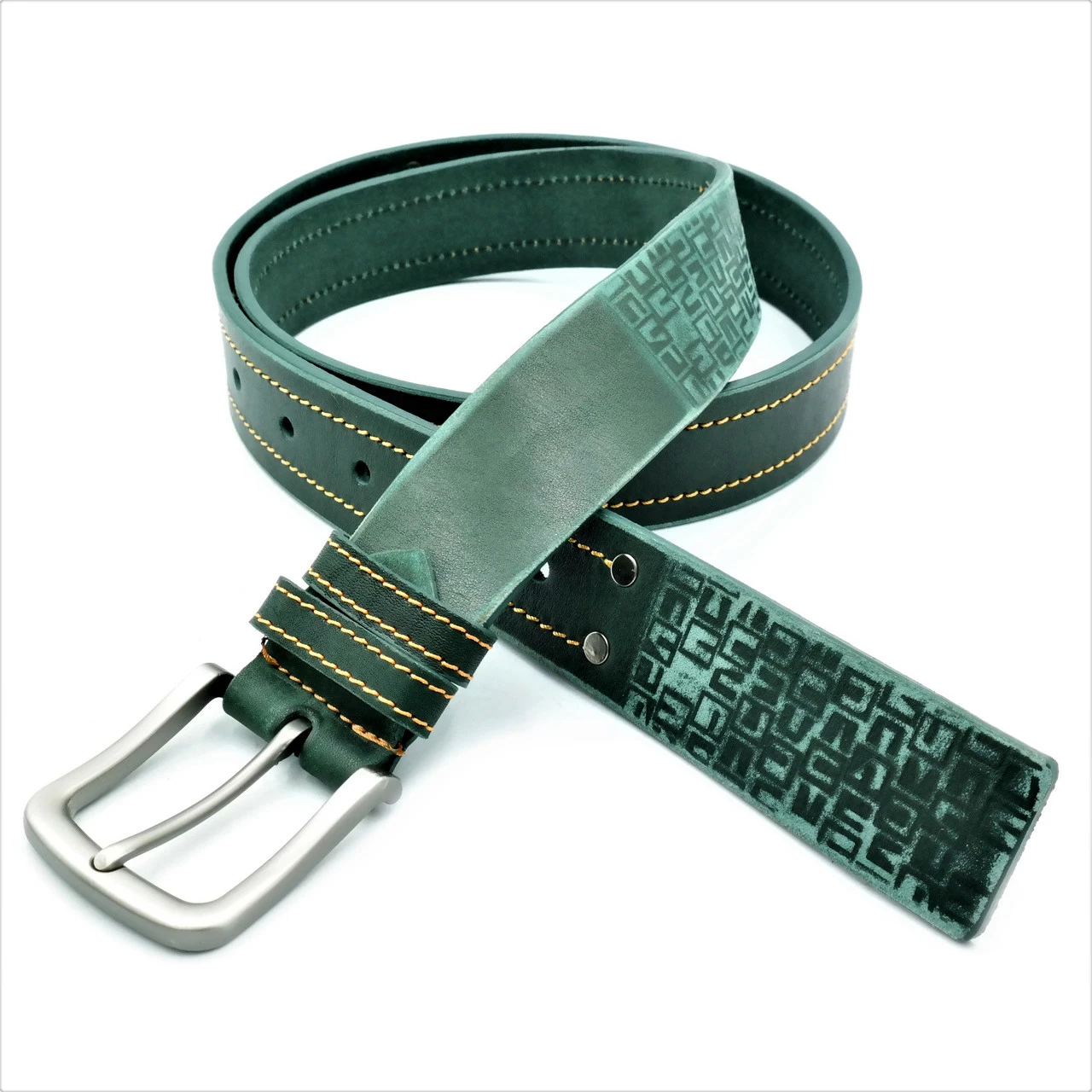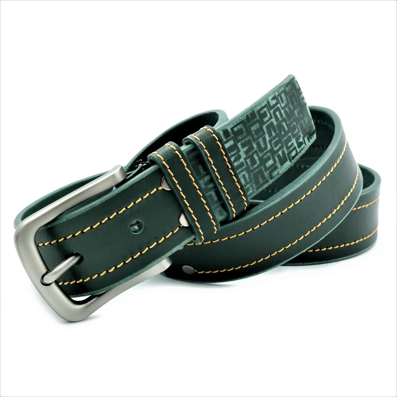 Ремень мужской кожаный Weatro Темно-зеленый 115,120 см lmn-mk38ua-017
