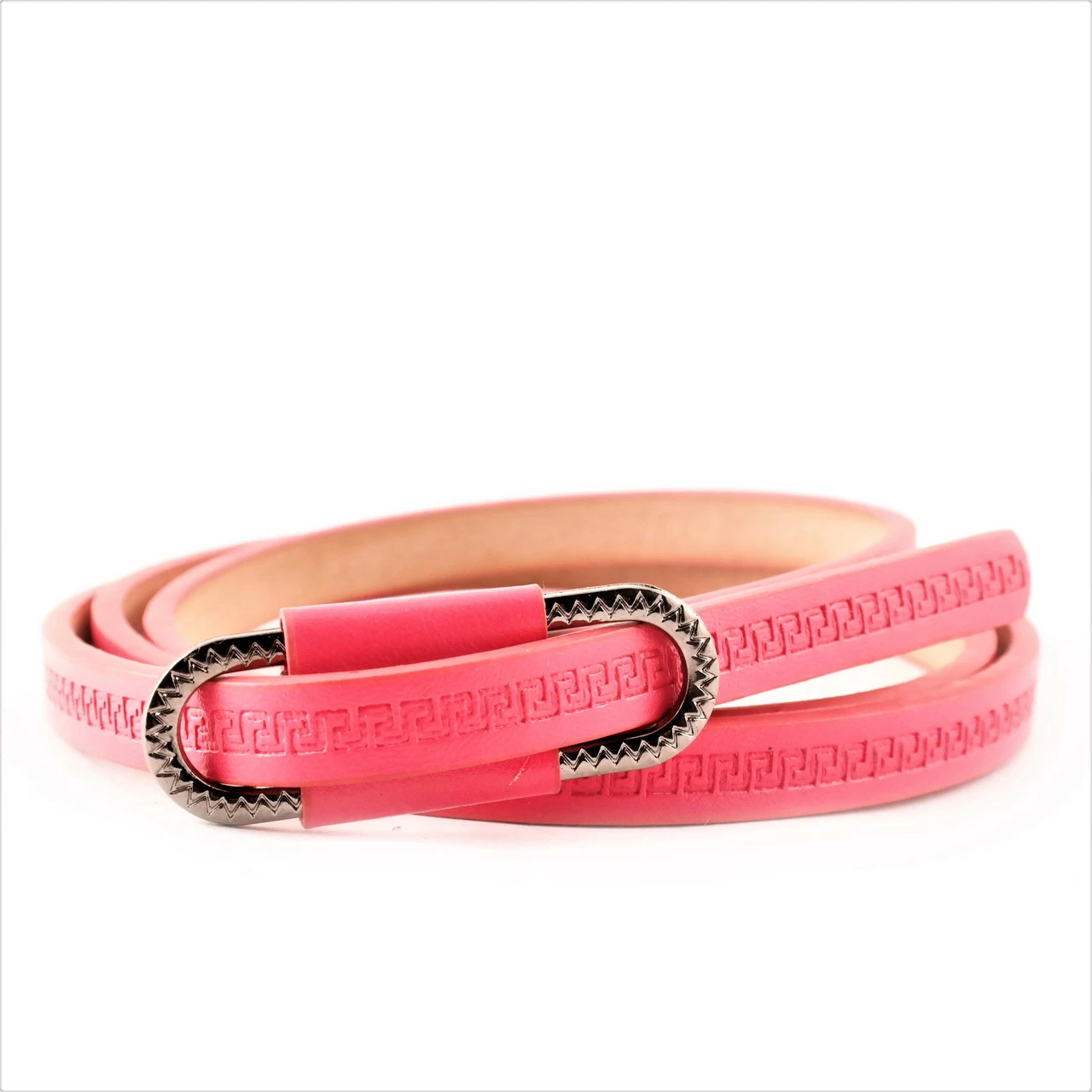 Ремень женский экокожа с тиснением, зажимная пряжка, ширина 1 см.
