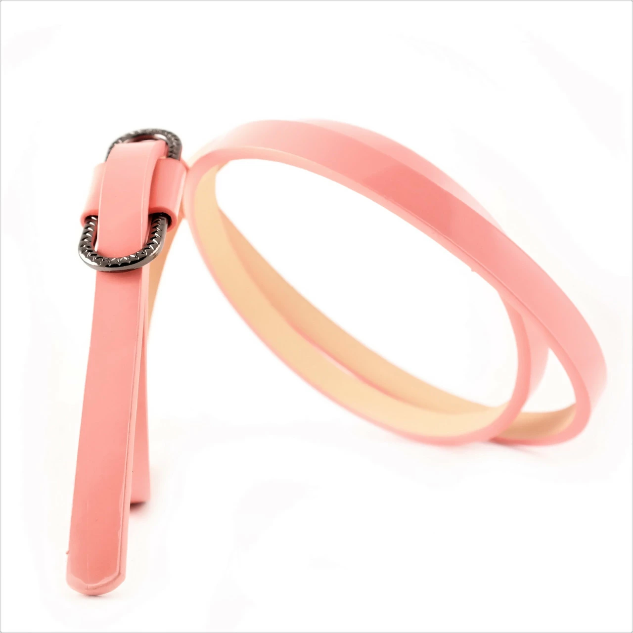 Ремень женский экокожа, лаковый, зажимная пряжка, ширина 1 см.