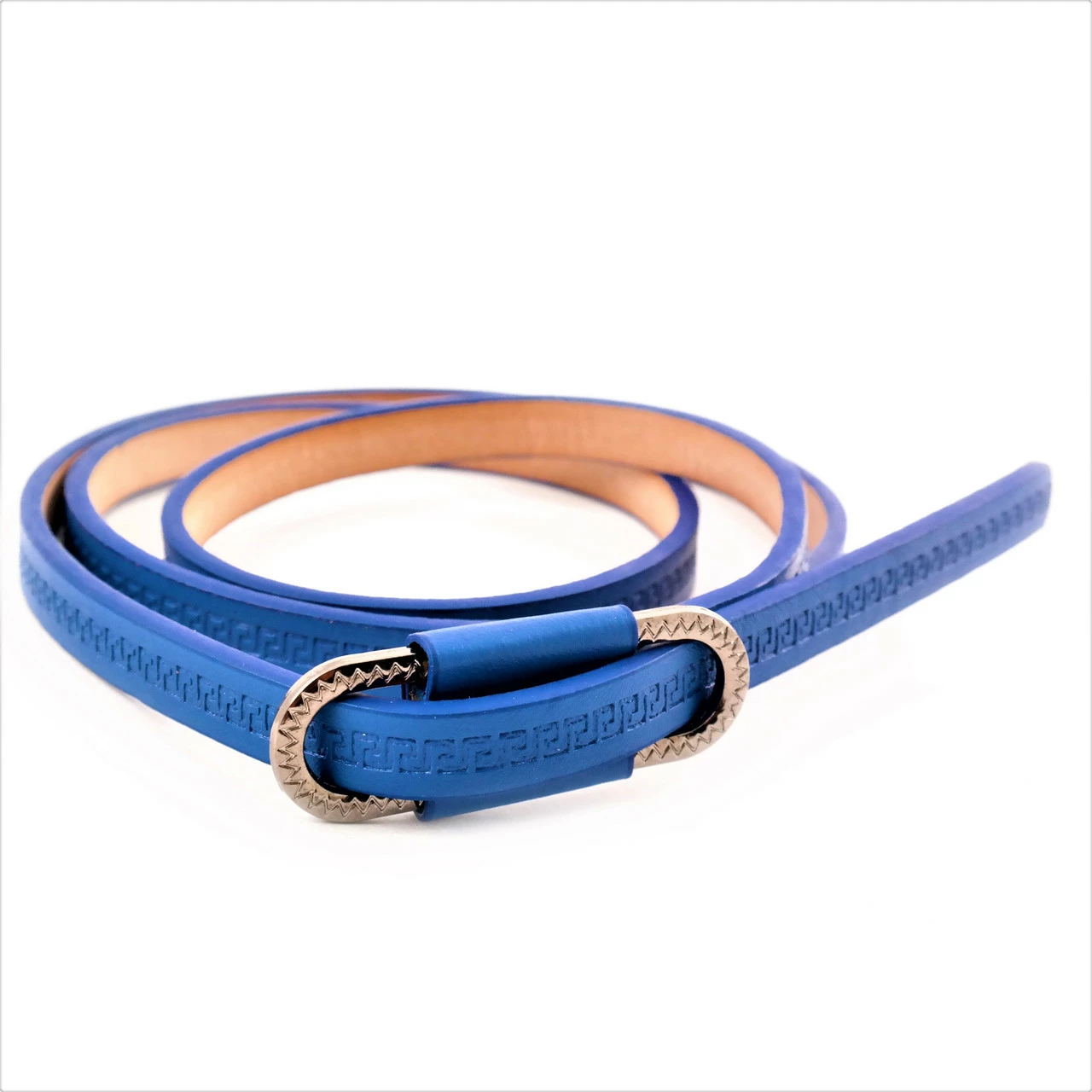 Ремень женский экокожа с тиснением, зажимная пряжка, ширина 1 см.