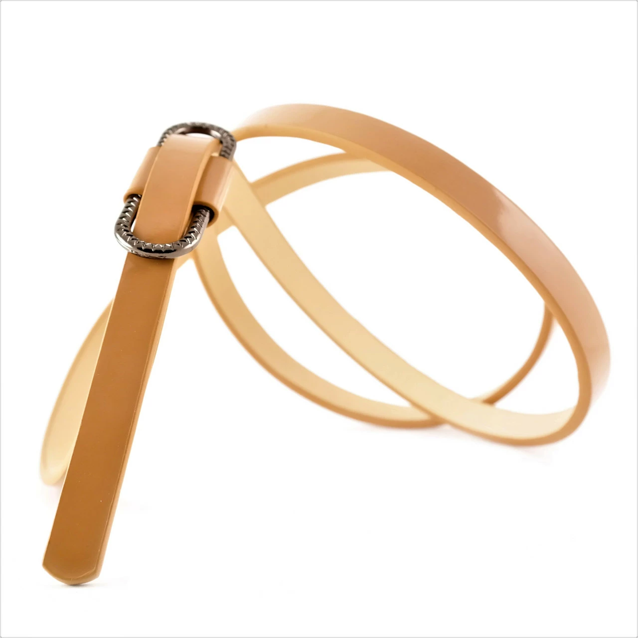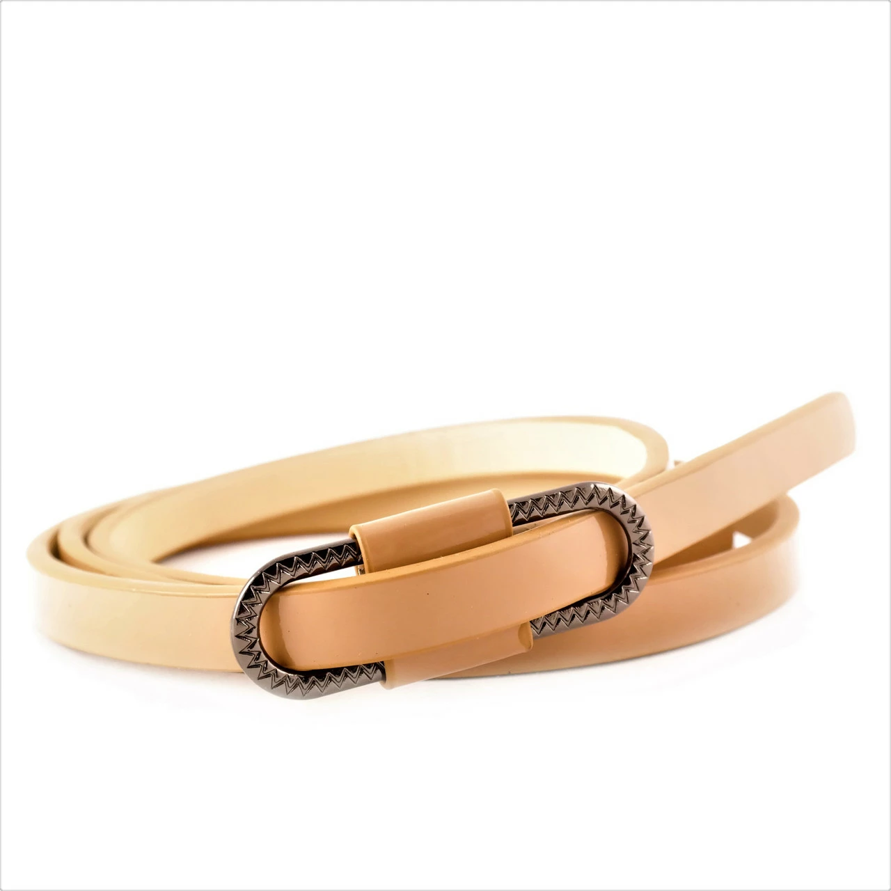Ремень женский экокожа, лаковый, зажимная пряжка, ширина 1 см.