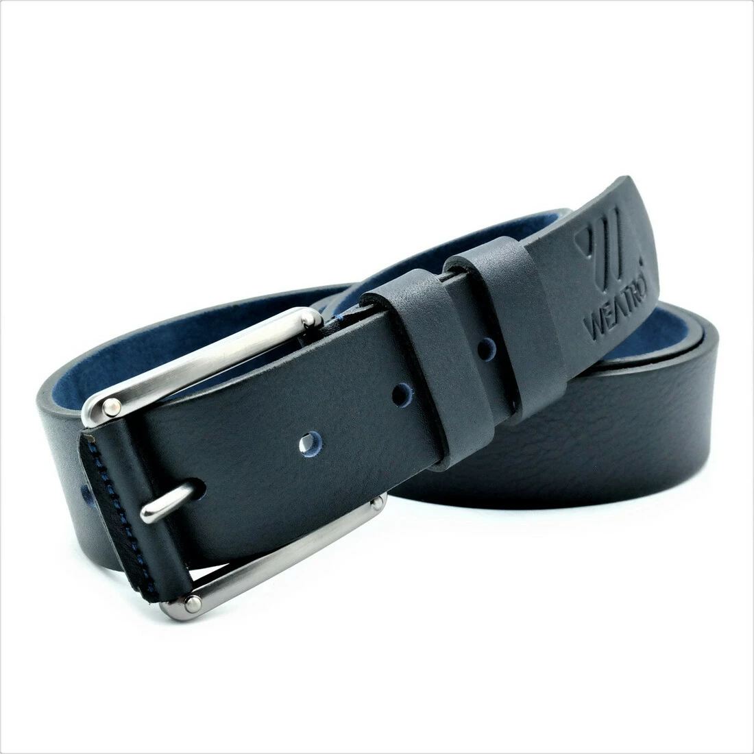 Шкіряний ремінь Weatro 3,8 х 115-120 см Темно-синій m-kozh38-wtrua-0063