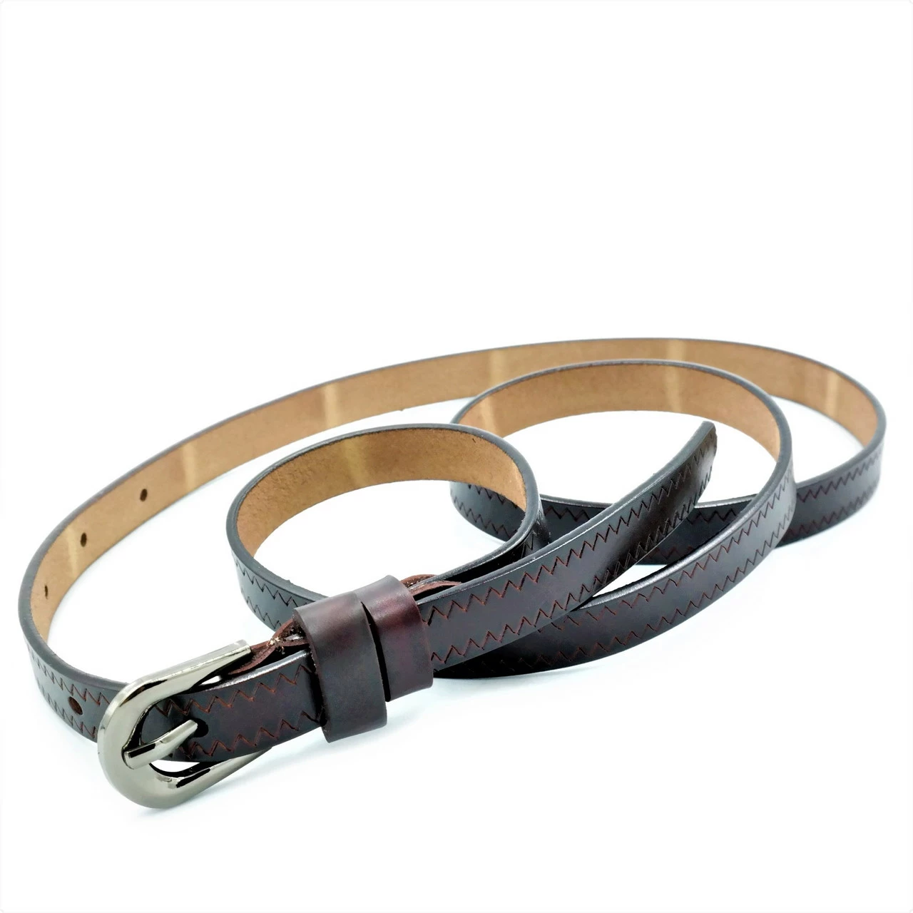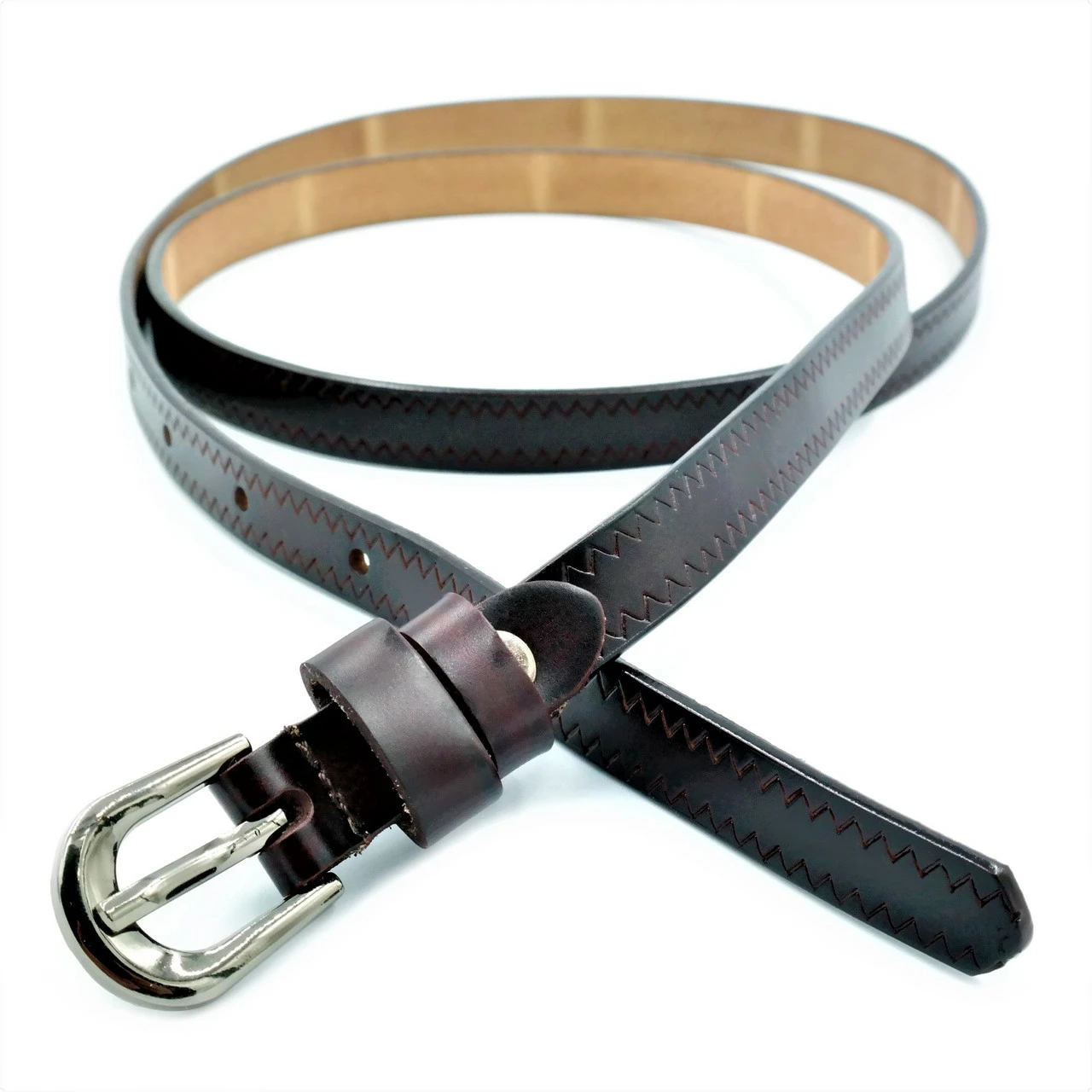 Ремень женский из натуральной кожи, ширина 1,5 см, длина 110-115