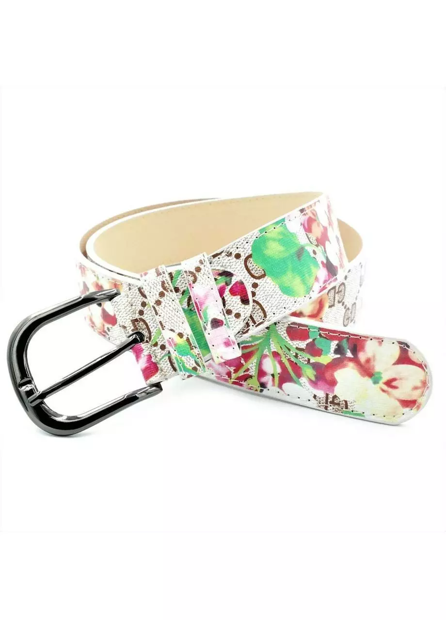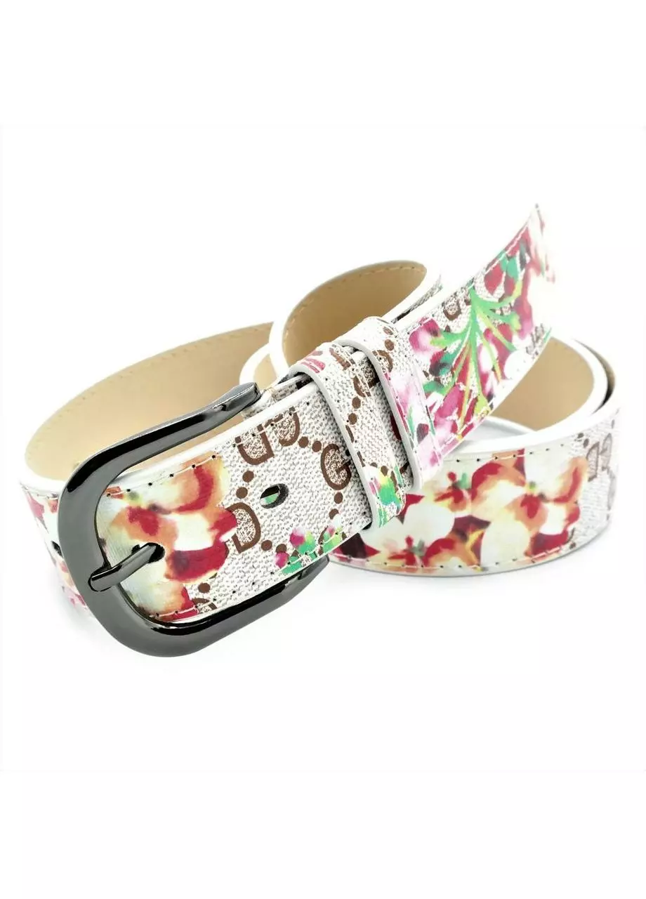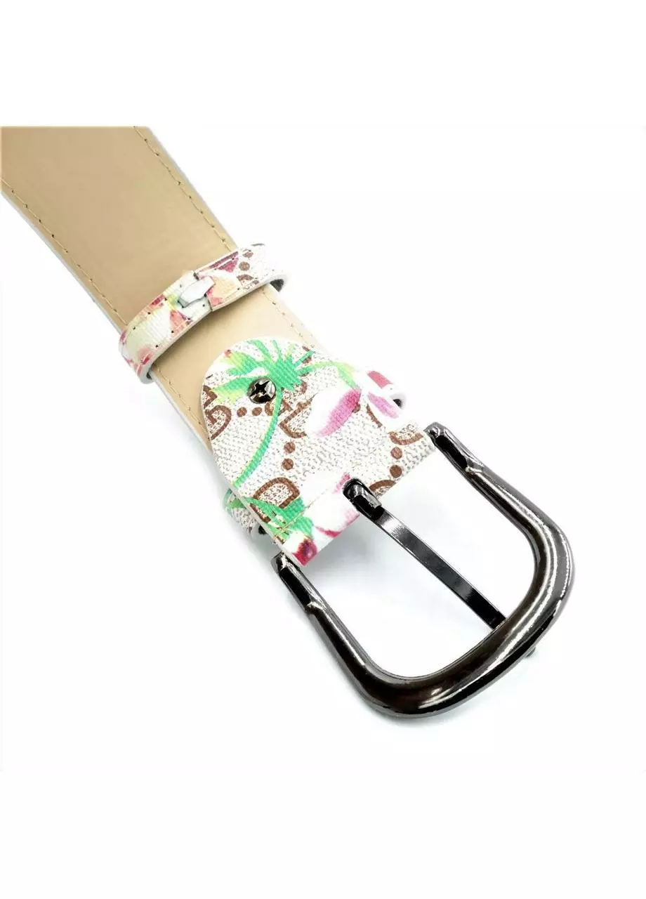 Женский ремень Weatro Бежевый с цветочным принтом kz-zh35-kit-010