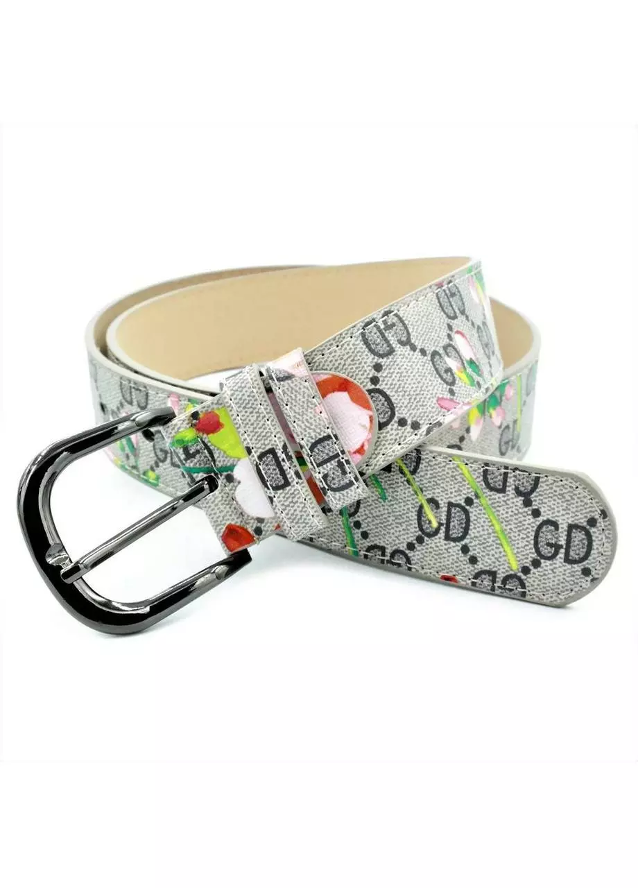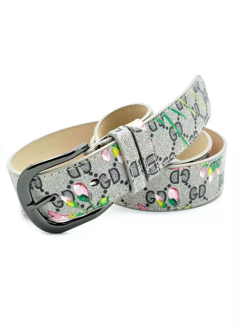 Женский ремень Weatro Серый с цветочным принтом kz-zh35-kit-08