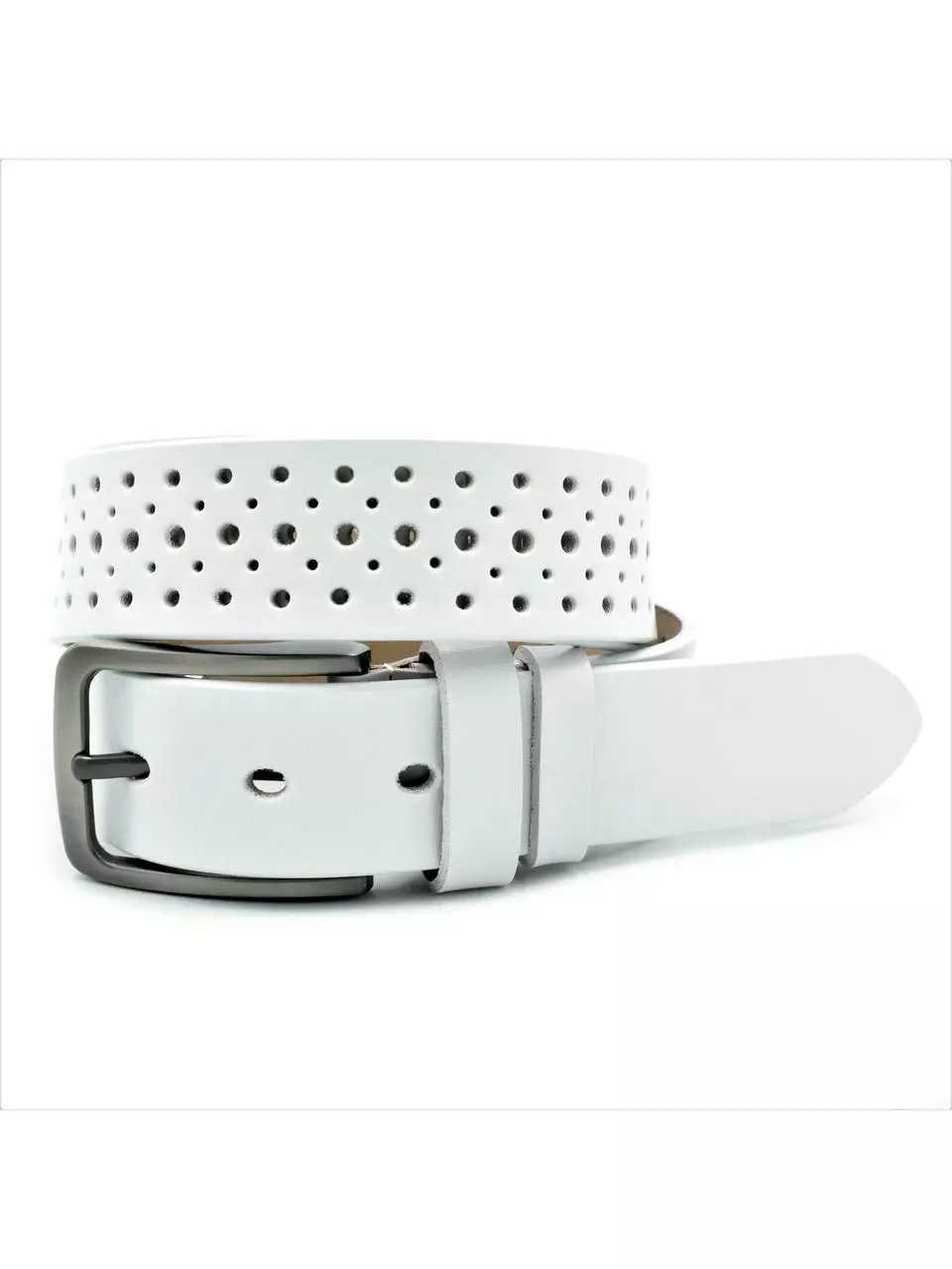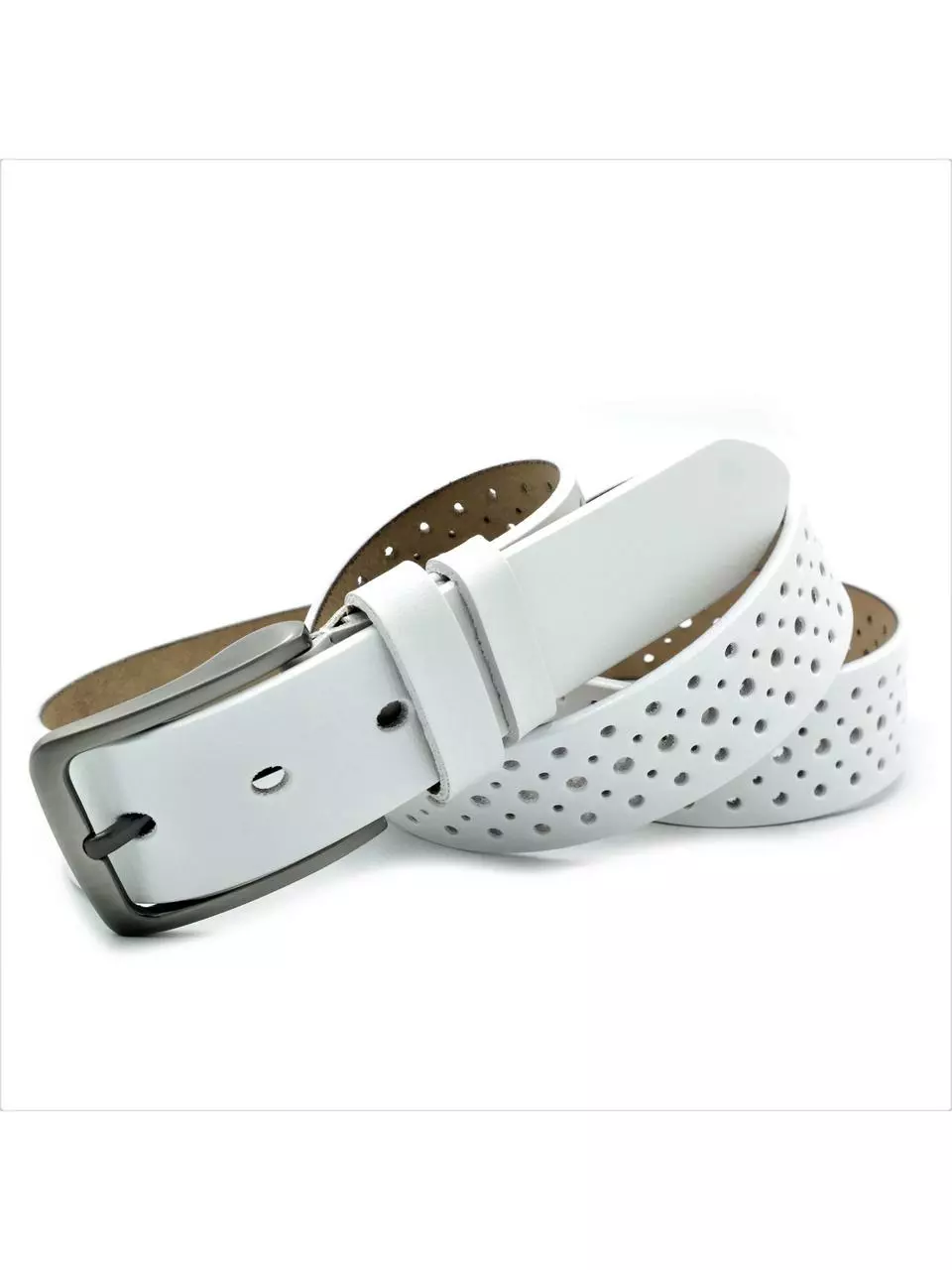 Жіночий шкіряний ремінь Weatro 3,3х110-115 см Білий lmn-zh-33k-010