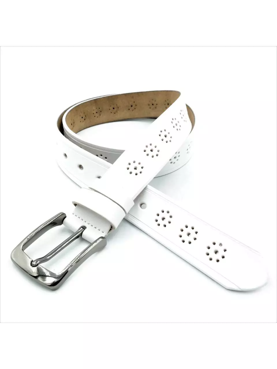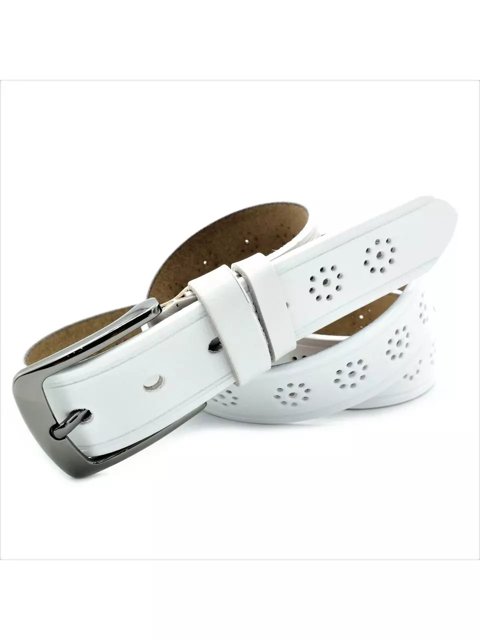 Жіночий шкіряний ремінь Weatro 3,3х110-115 см Білий lmn-zh-33k-030