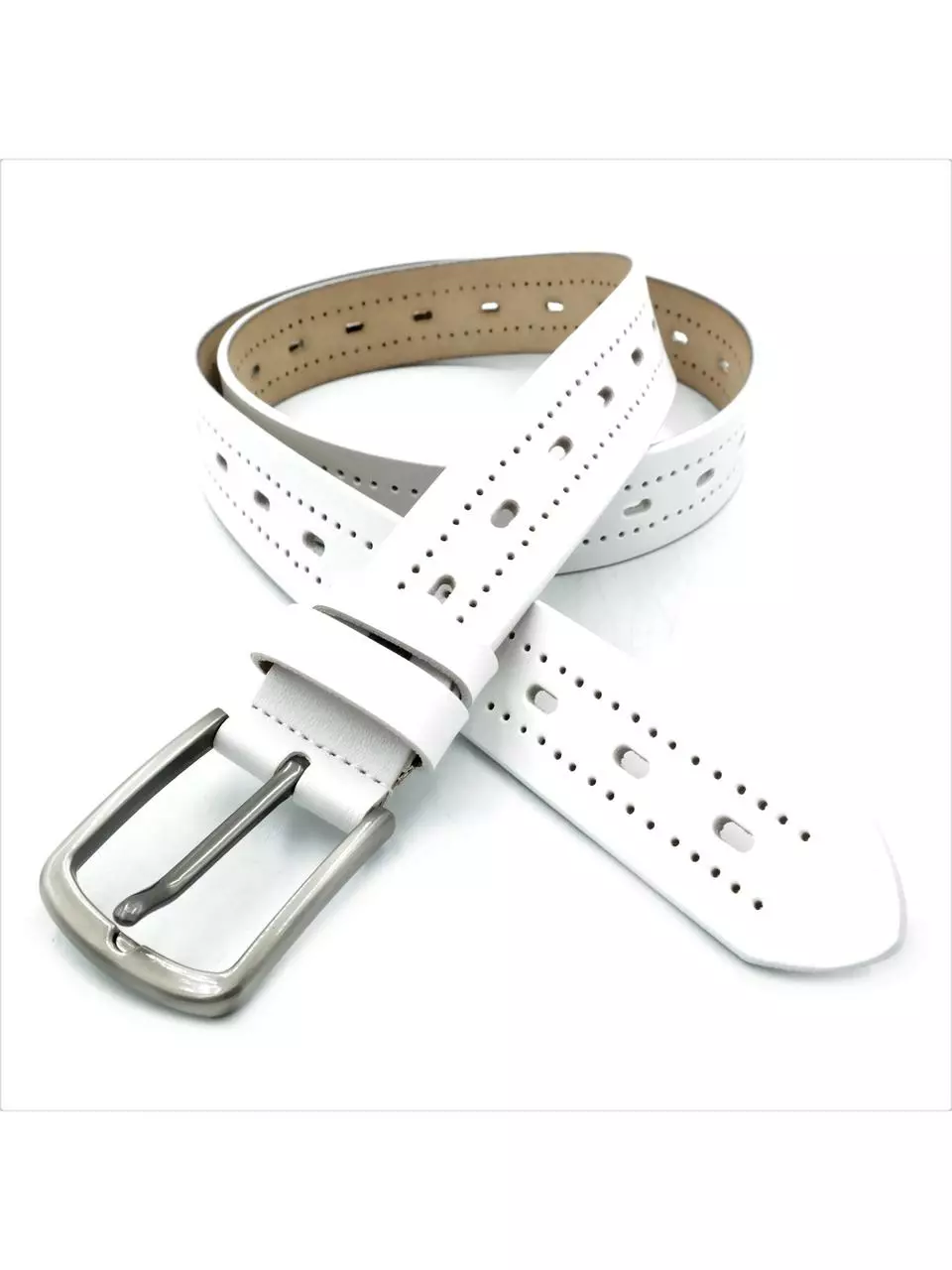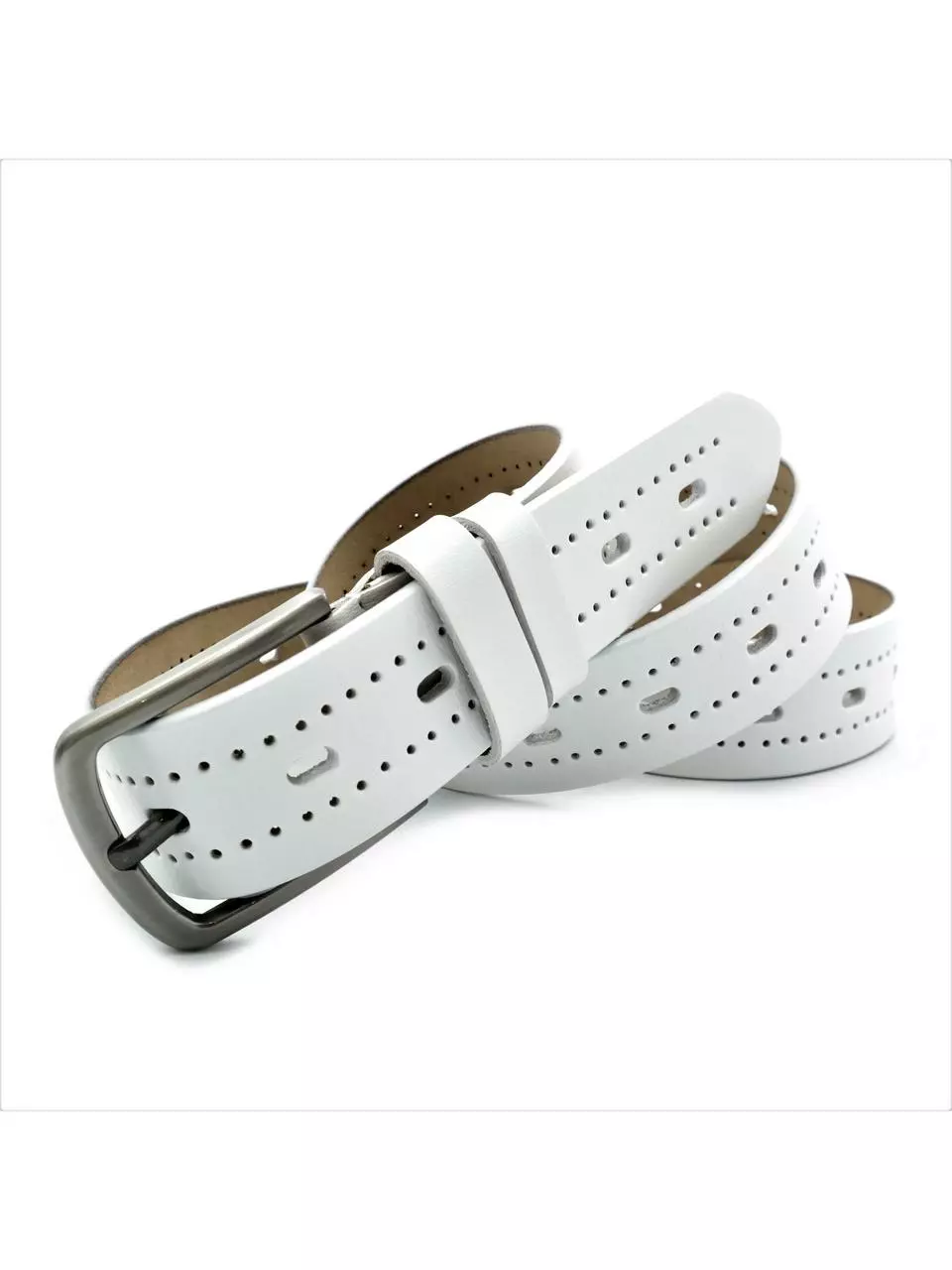 Жіночий шкіряний ремінь Weatro 3,3х110-115 см Білий lmn-zh-33k-034