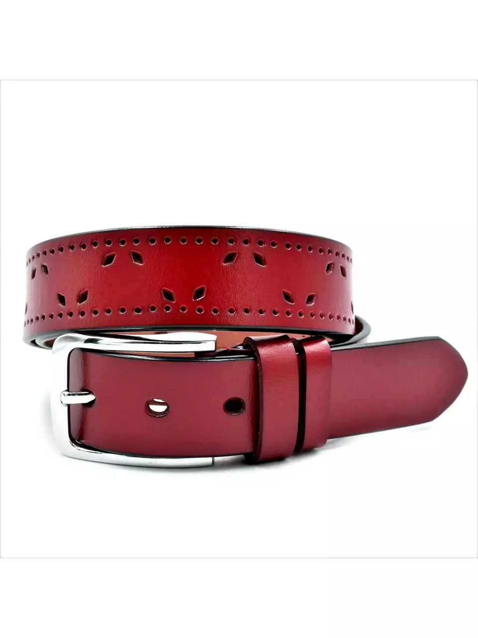 Жіночий шкіряний ремінь Weatro 3,3х110-115 см Червоний lmn-zh-33k-004