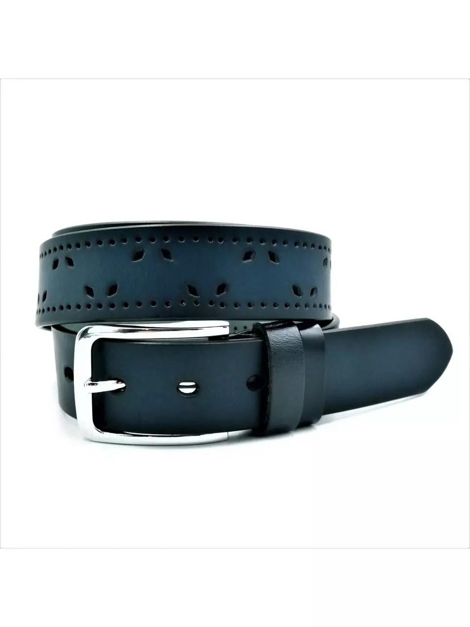 Жіночий шкіряний ремінь Weatro 3,3х110-115 см Темно-синій lmn-zh-33k-001
